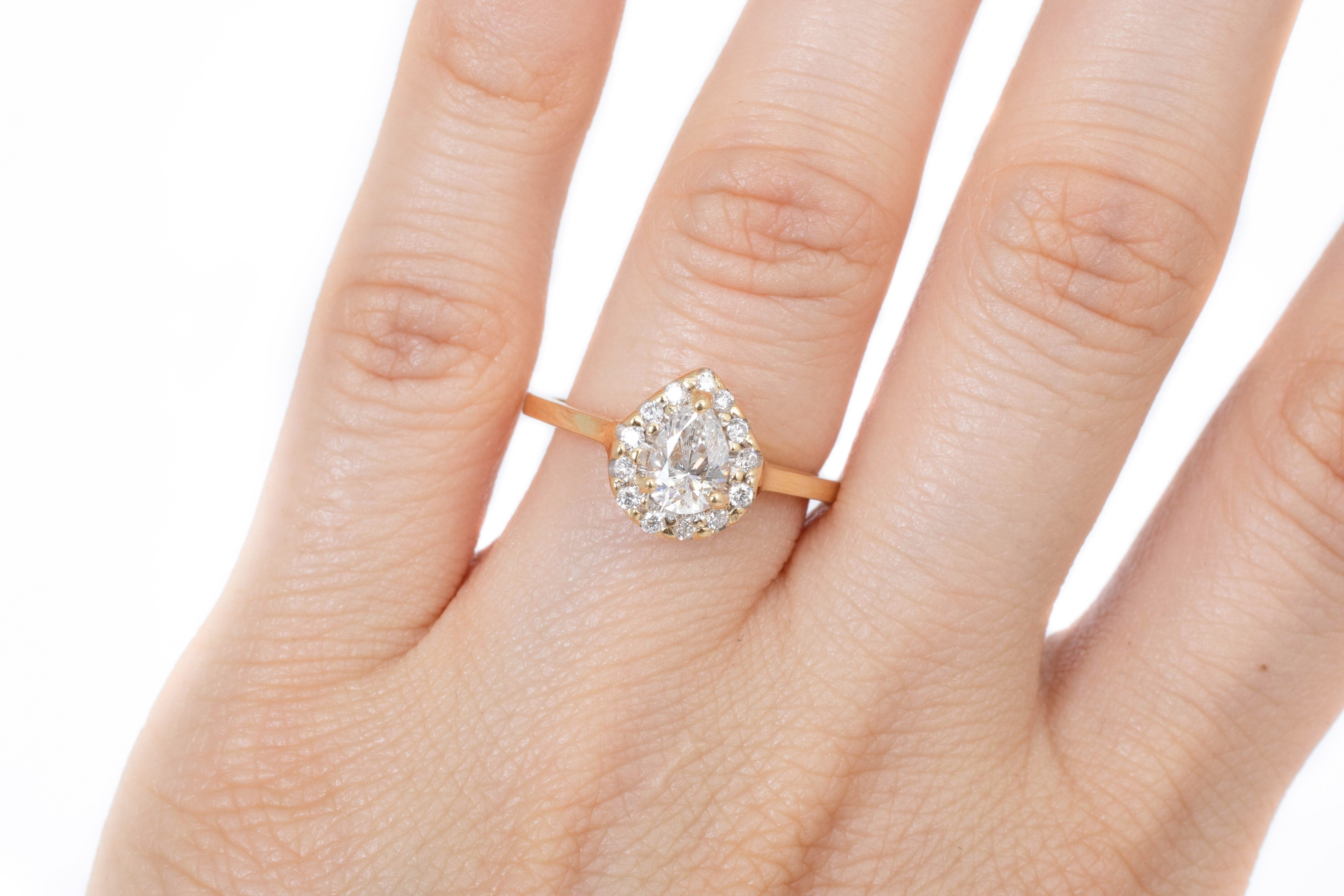 Anillo de Compromiso Diamante Pera .57 ct y Diamantes Halo .13 ctw