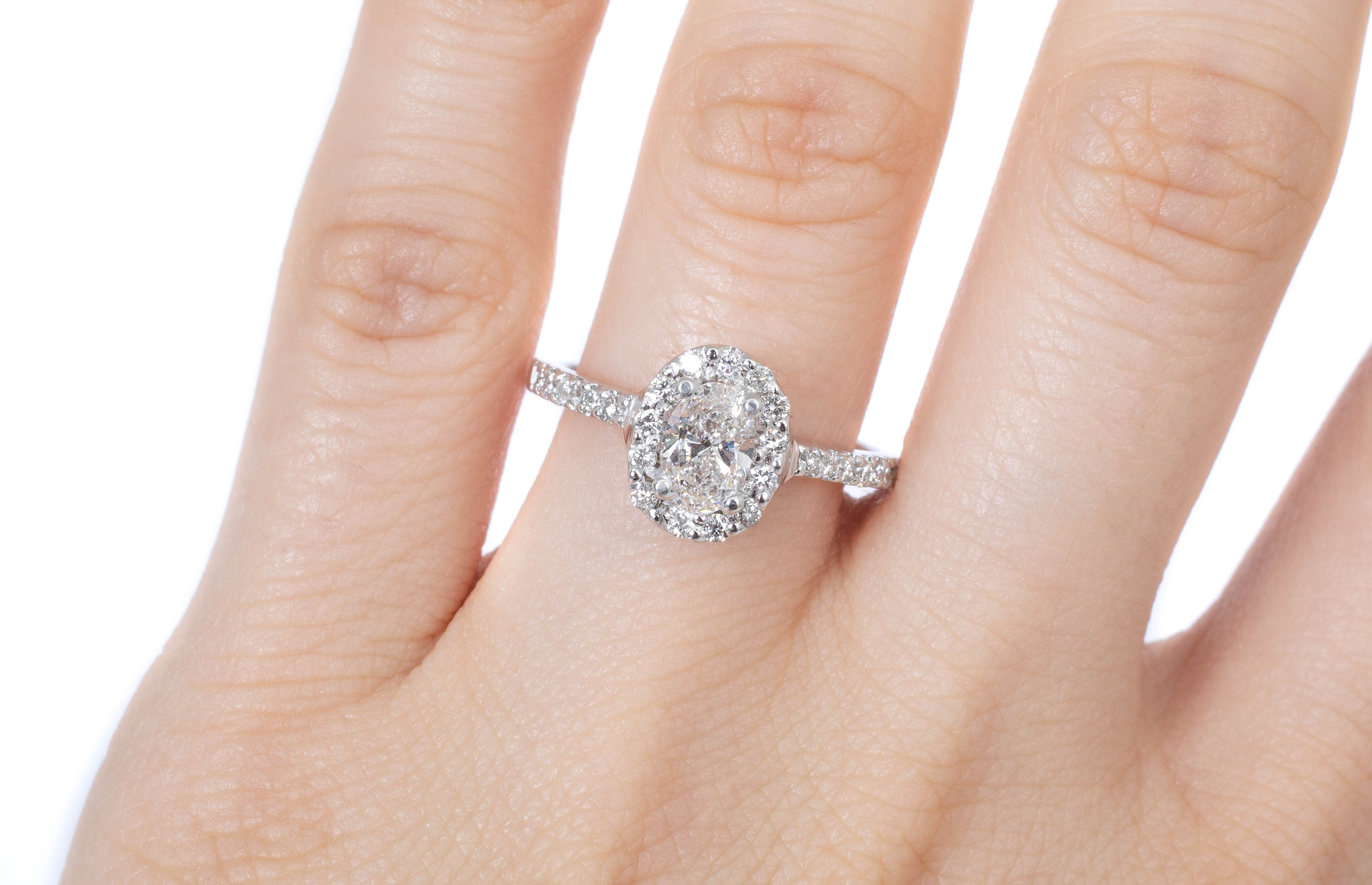 Anillo de Compromiso Diamante Oval .50 ct Diamantes Halo-Pavé .25 ctw