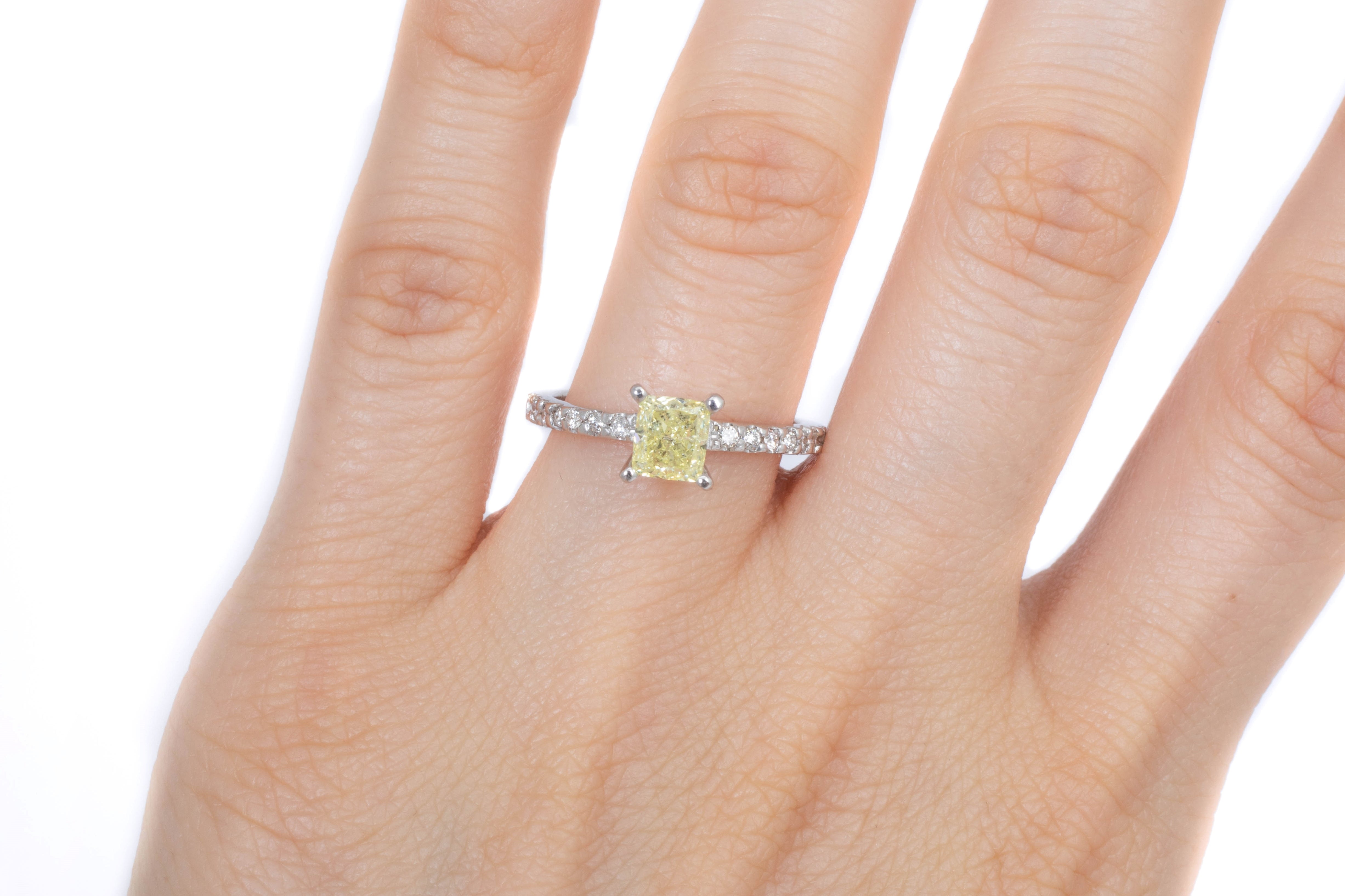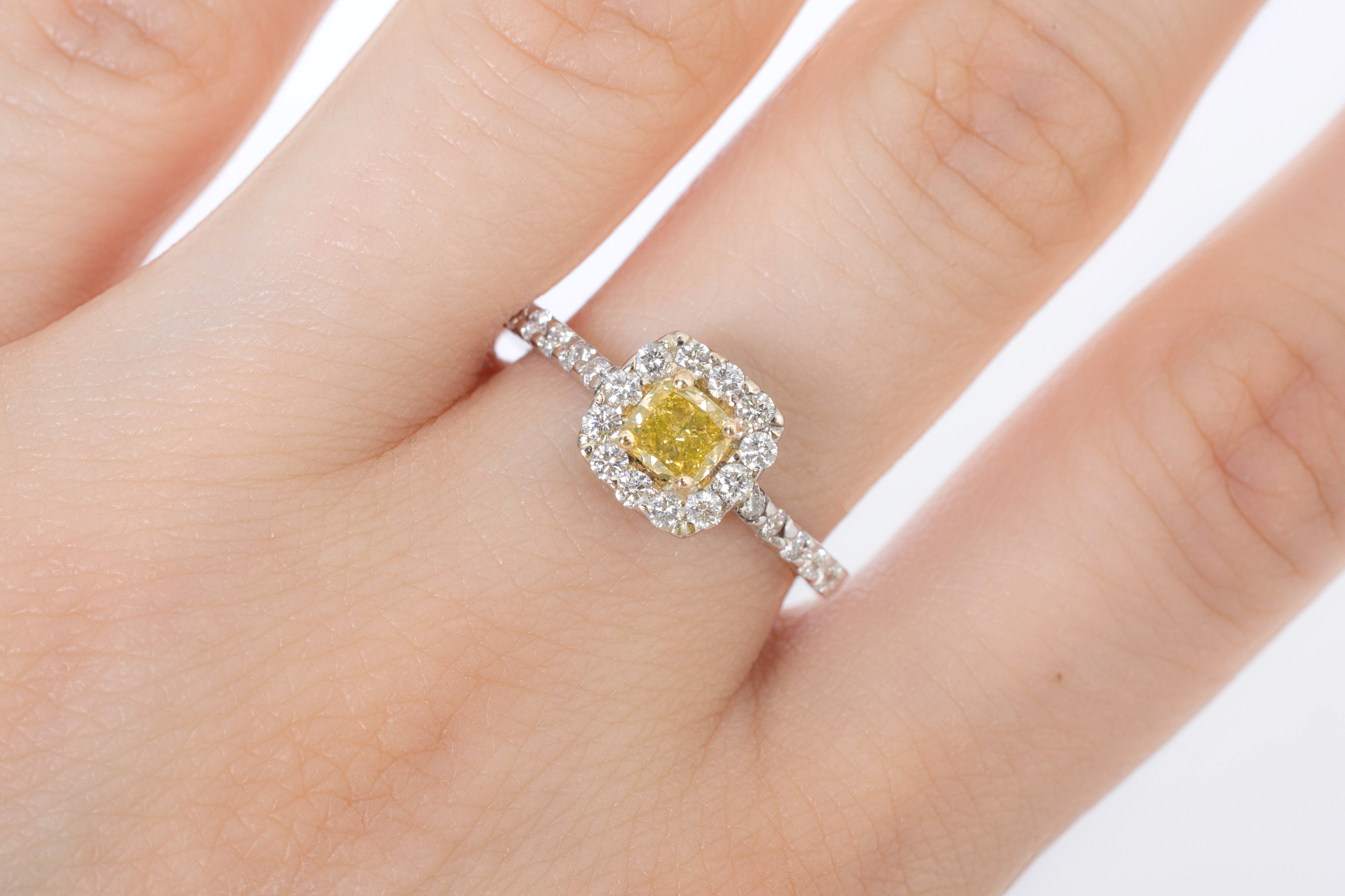Anillo de Compromiso Diamante Canario .68 ct, Diamantes Laterales .12 ctw