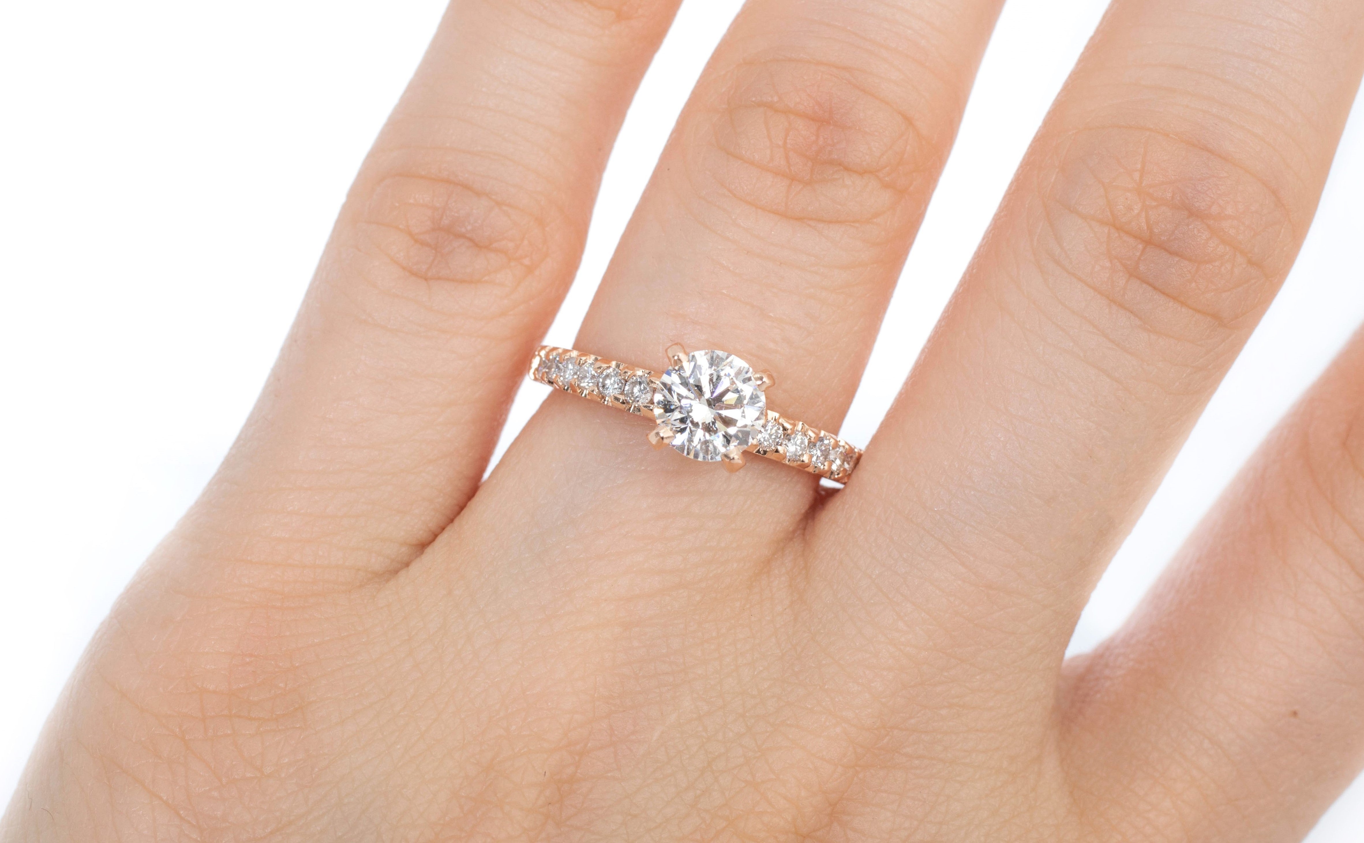 Anillo de Compromiso Diamante Central .85 ct, Diamantes Pavé .16 ctw
