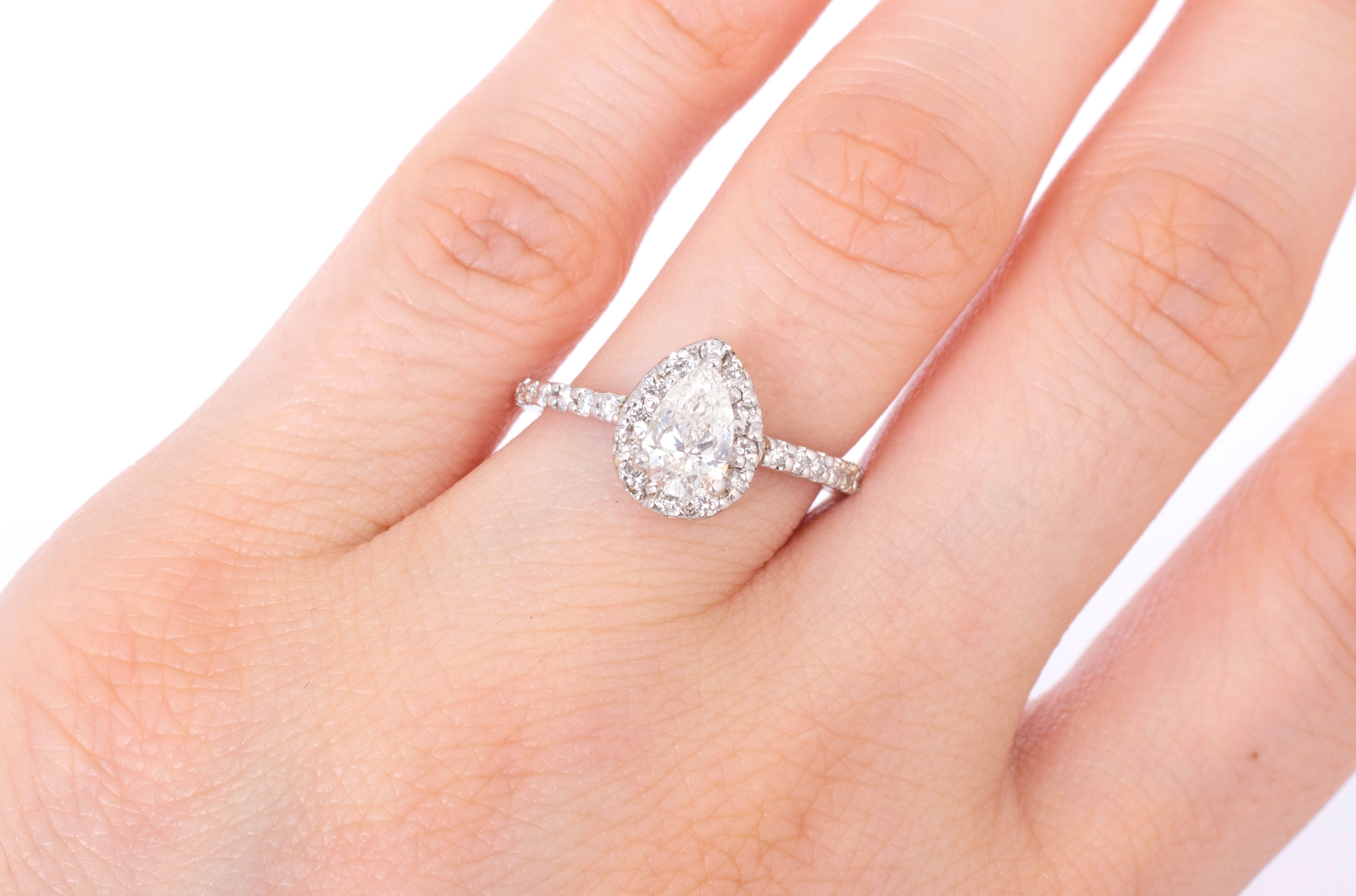 Anillo de Compromiso Diamante Pera .59 ct y Diamantes Halo-Pavé .28 ctw