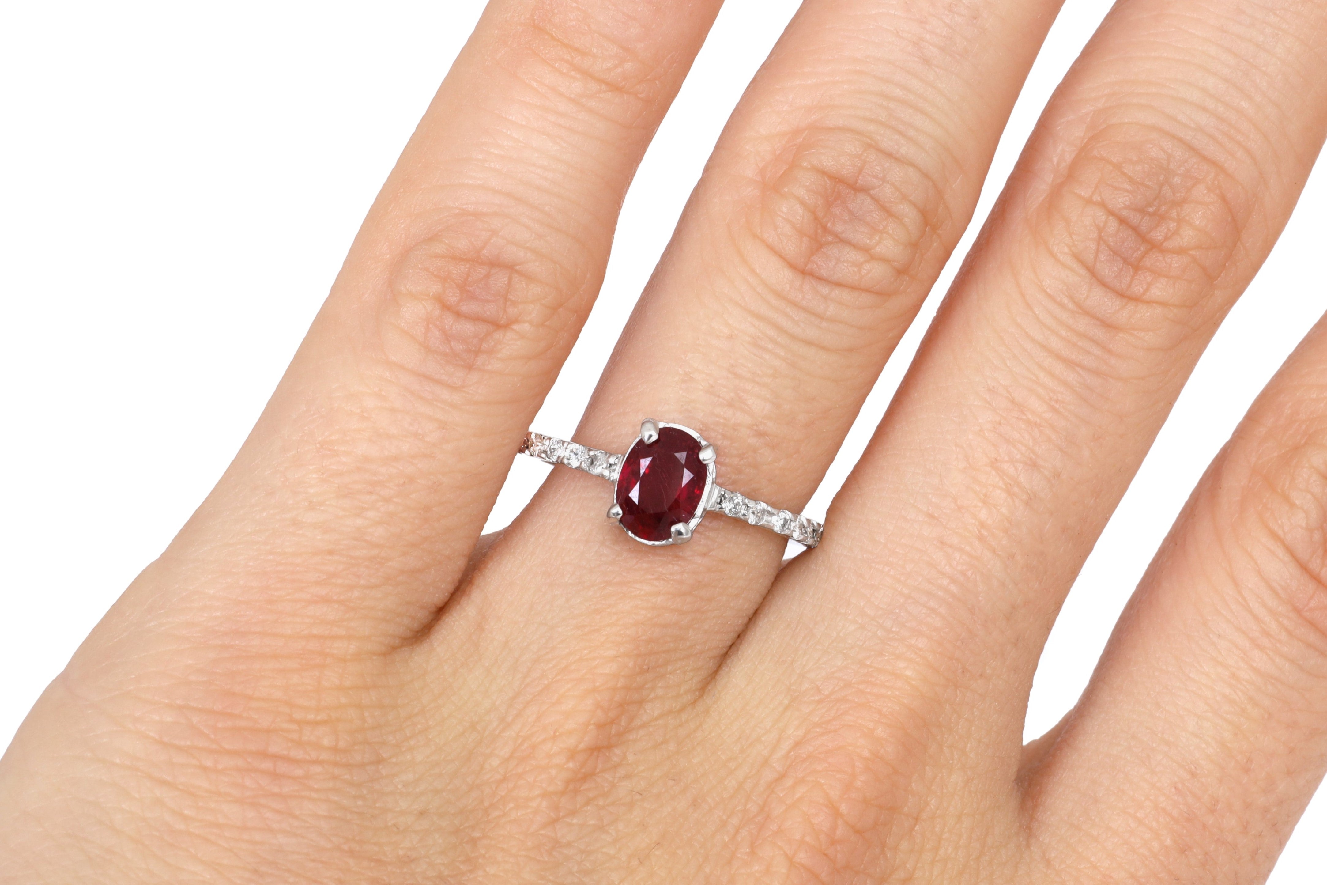 Anillo Oro Blanco Rubí 1.50 ct y Diamante Lateral .12 ctw