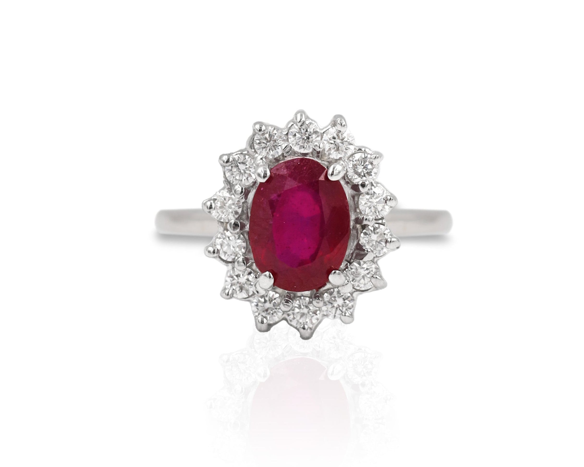 Anillo Oro Blanco Rubí 1.75 ct y Diamantes .50 ctw