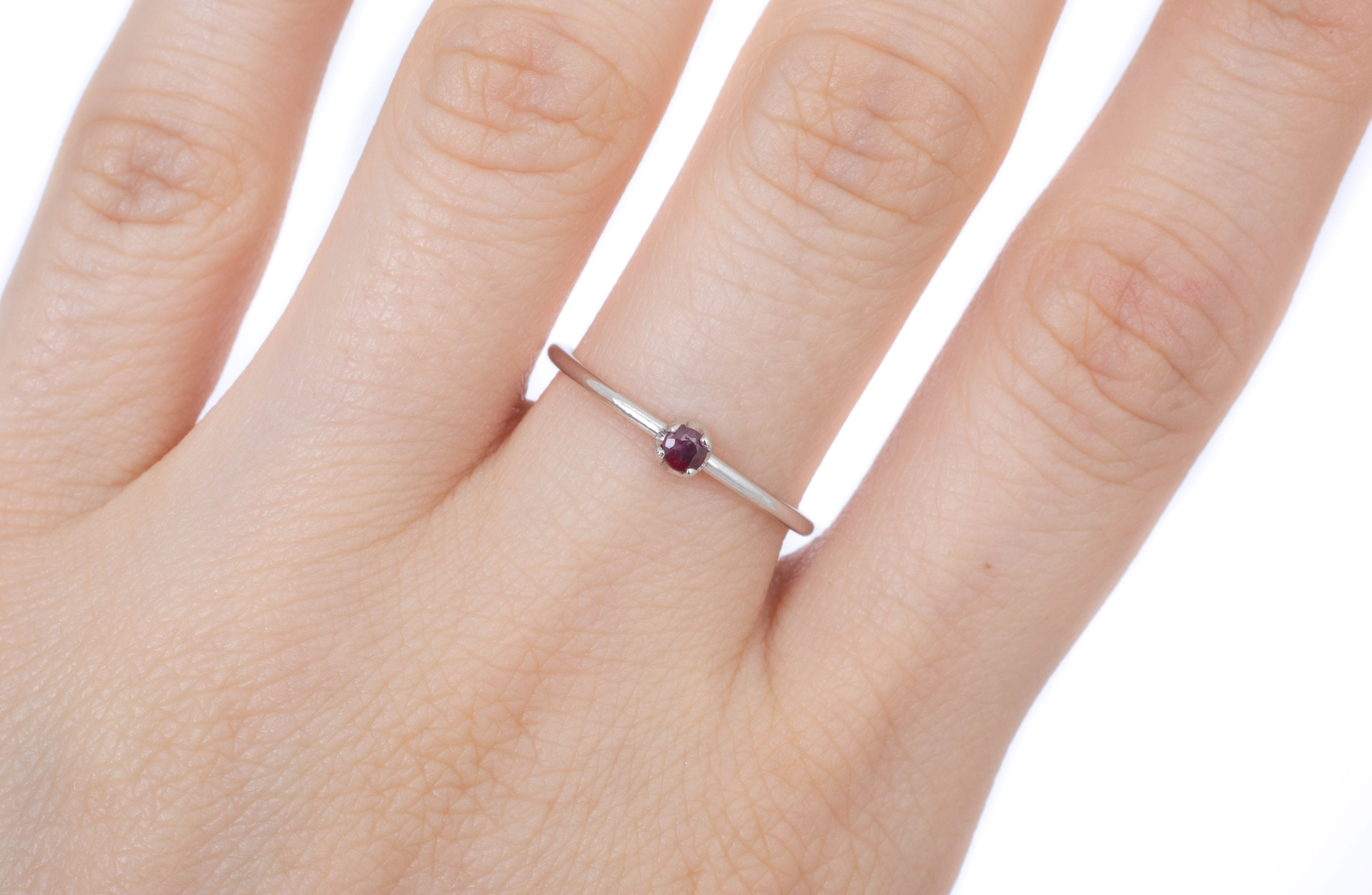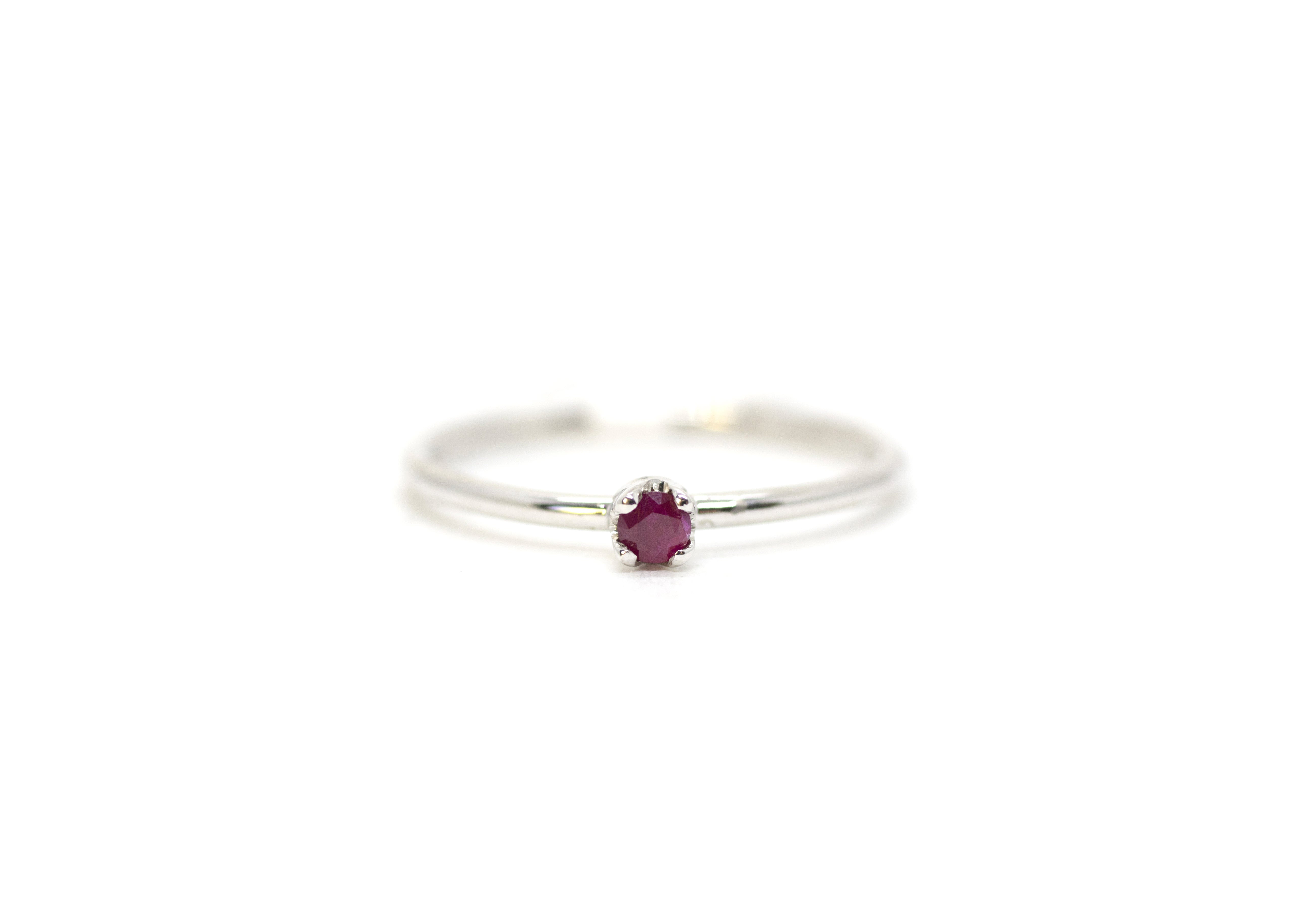 Anillo Oro Blanco Rubí 1.00 ct y Diamante Lateral .12 ctw