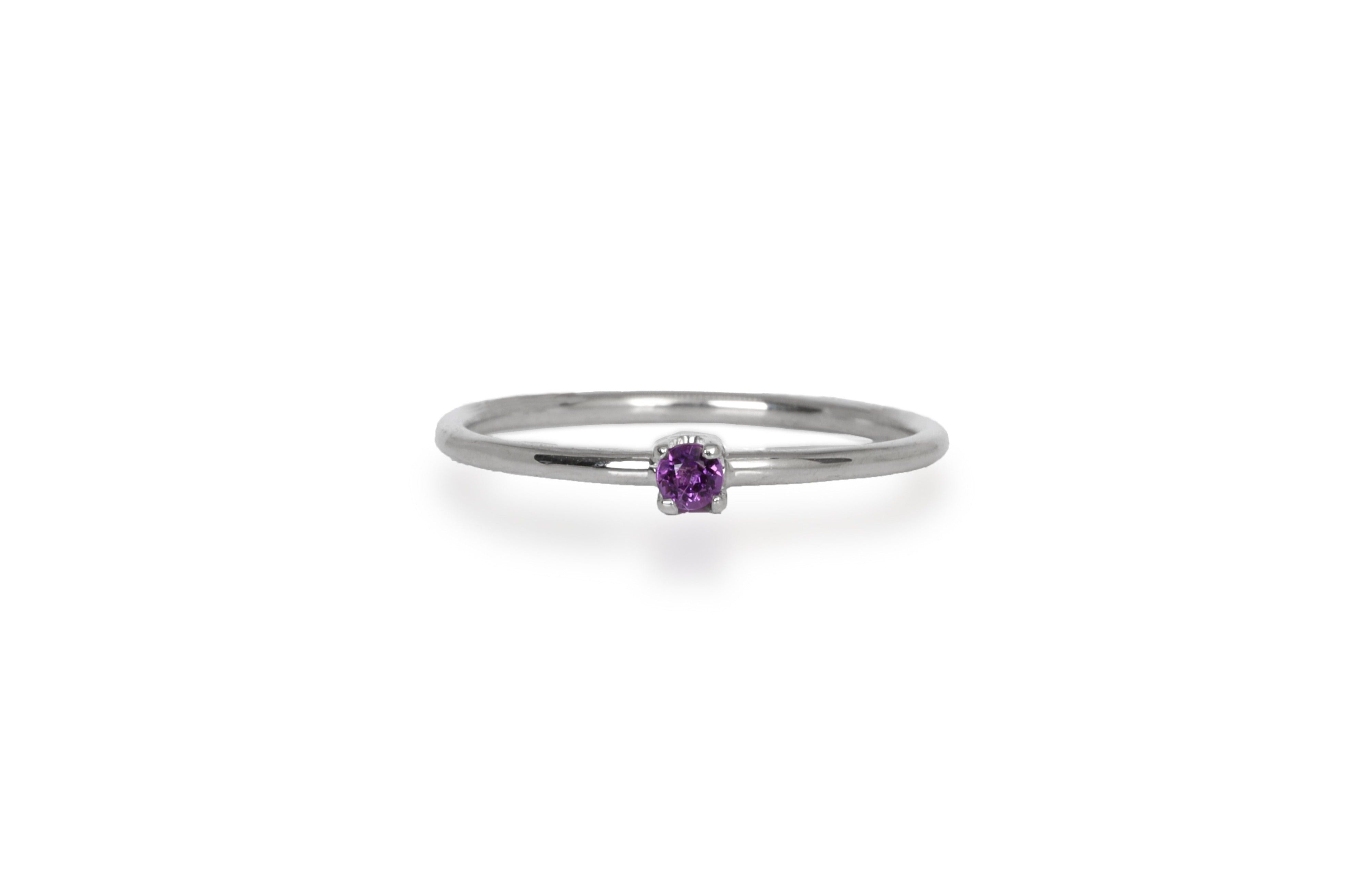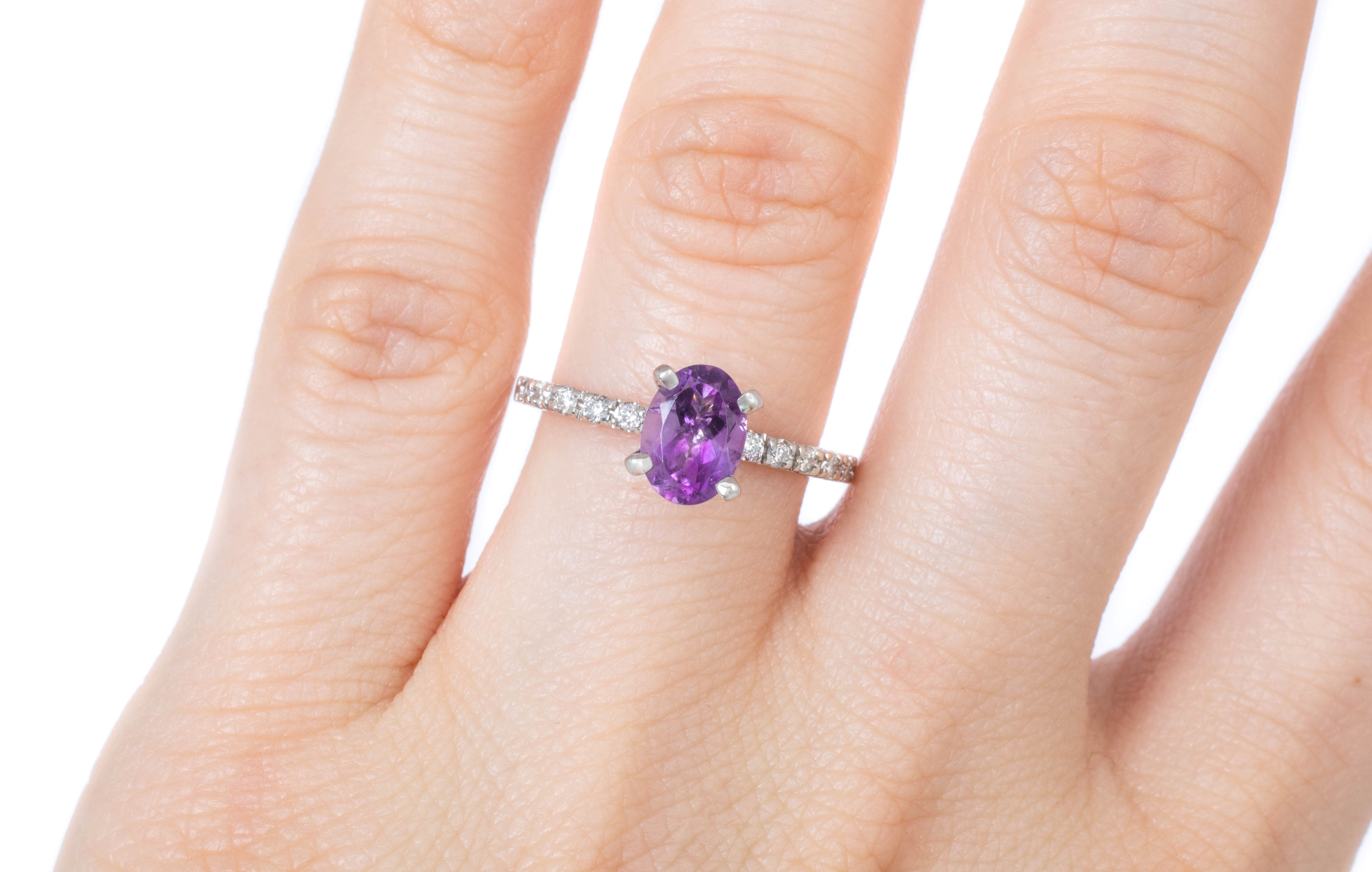 Anillo Oro Blanco Amatista 1.00 ct y Diamante Lateral .12 ctw