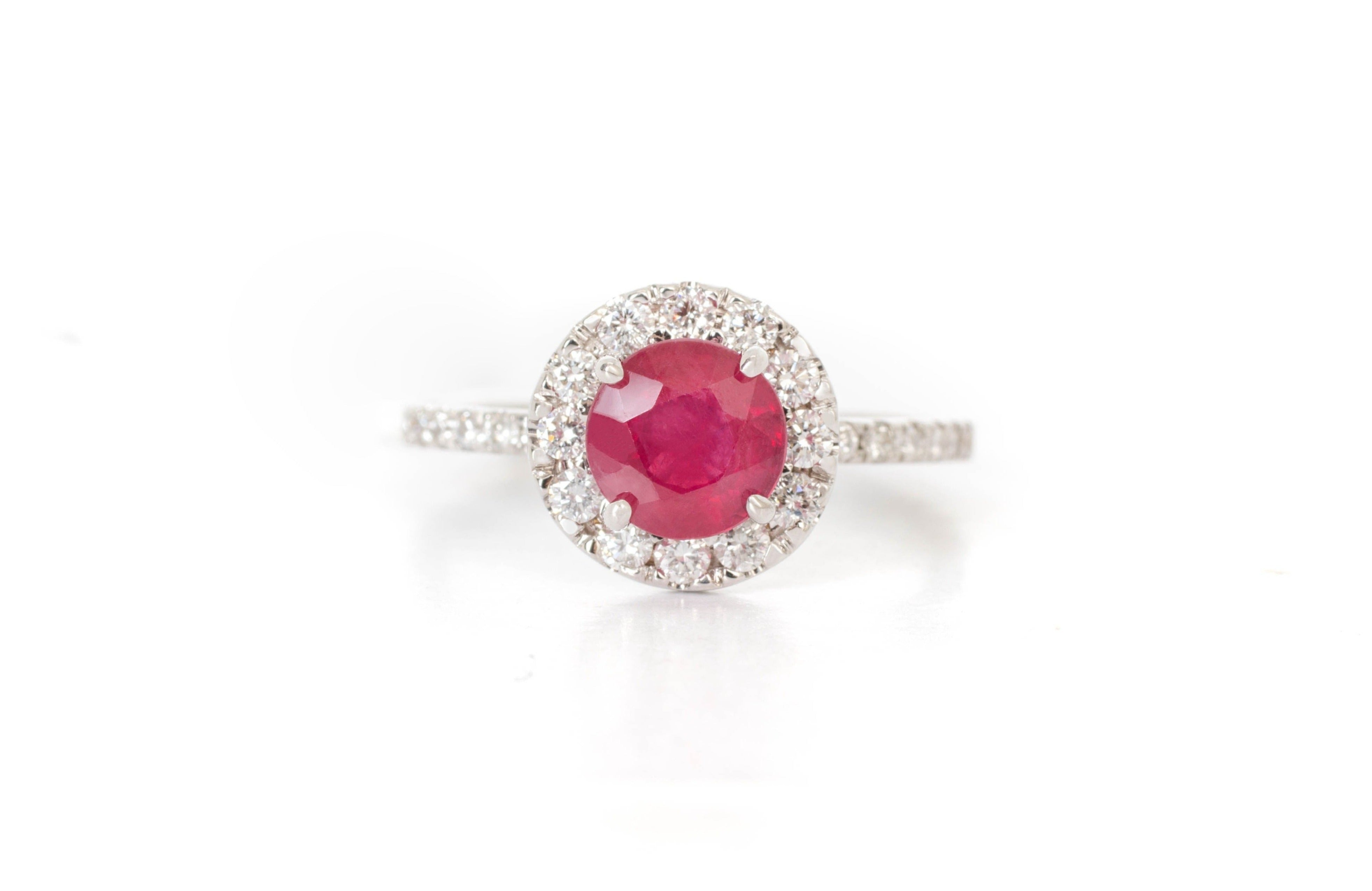 Anillo Oro Blanco Rubí 1.00 ct y Diamantes Halo .36 ctw