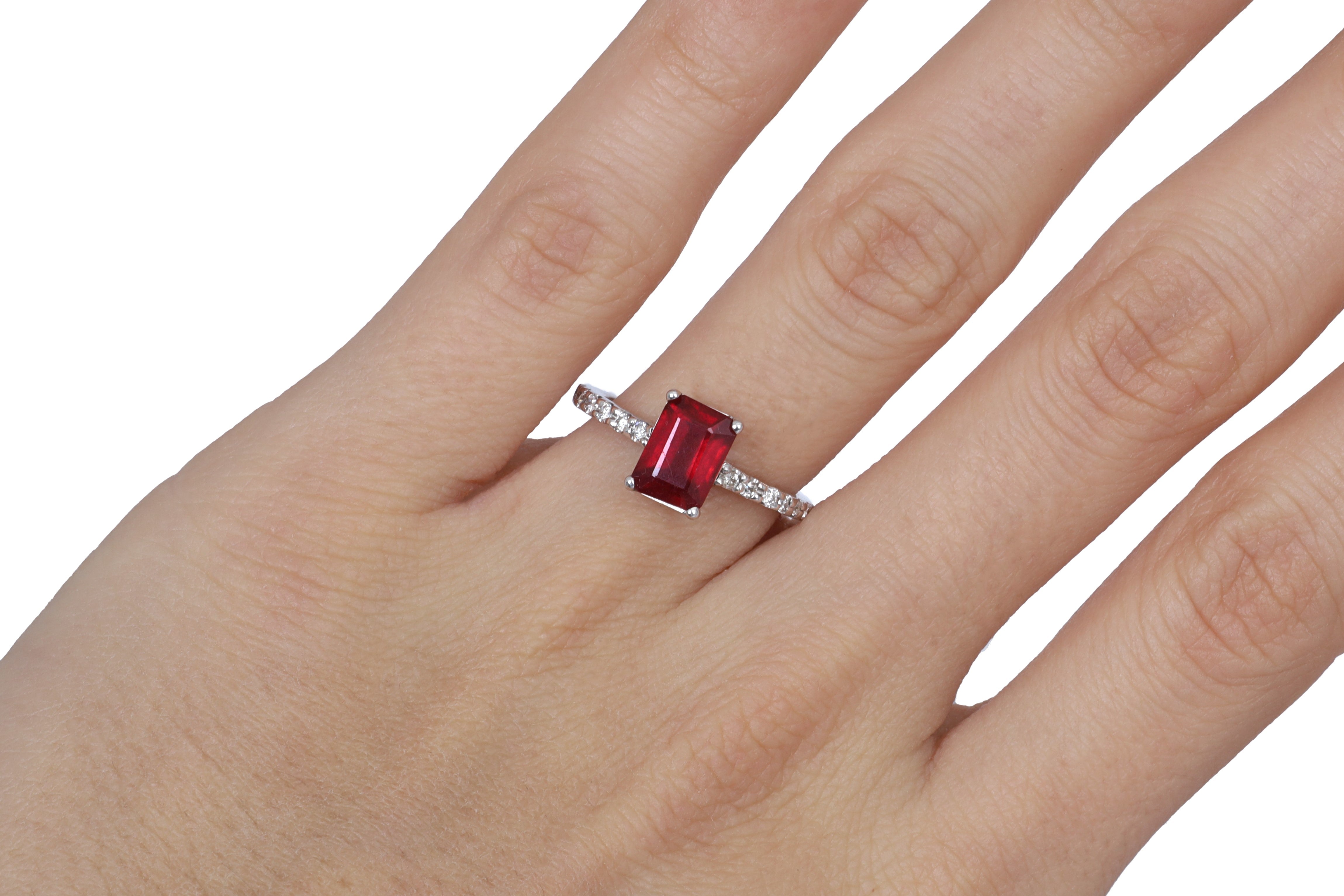 Anillo Oro Blanco Rubí 2.10 ct y Diamante Lateral .12 ctw