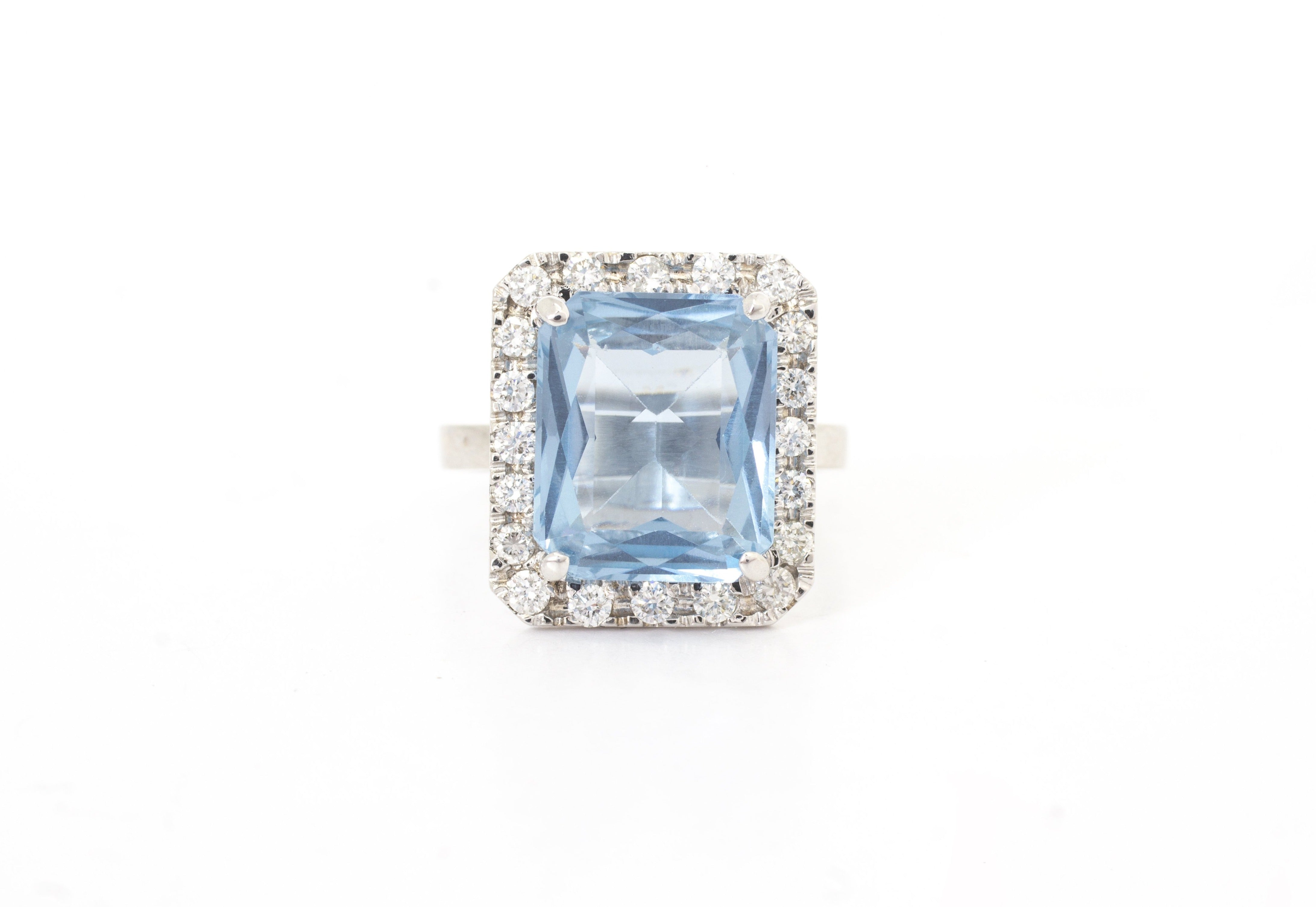 Anillo Oro Blanco Aguamarina 4.00 ct y Diamante .40 ctw