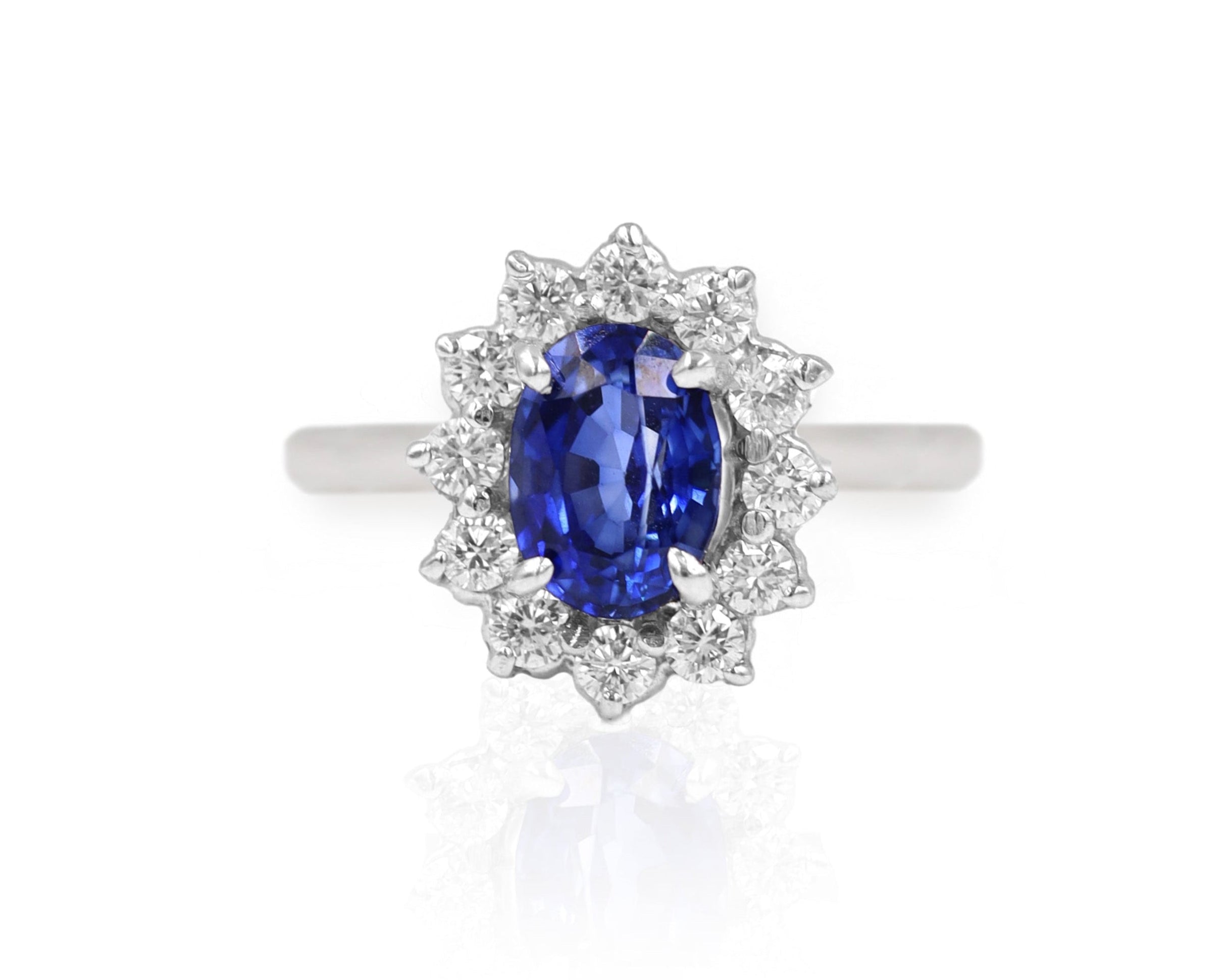 Anillo Oro Blanco Zafiro 2.20 ct con Diamantes Halo