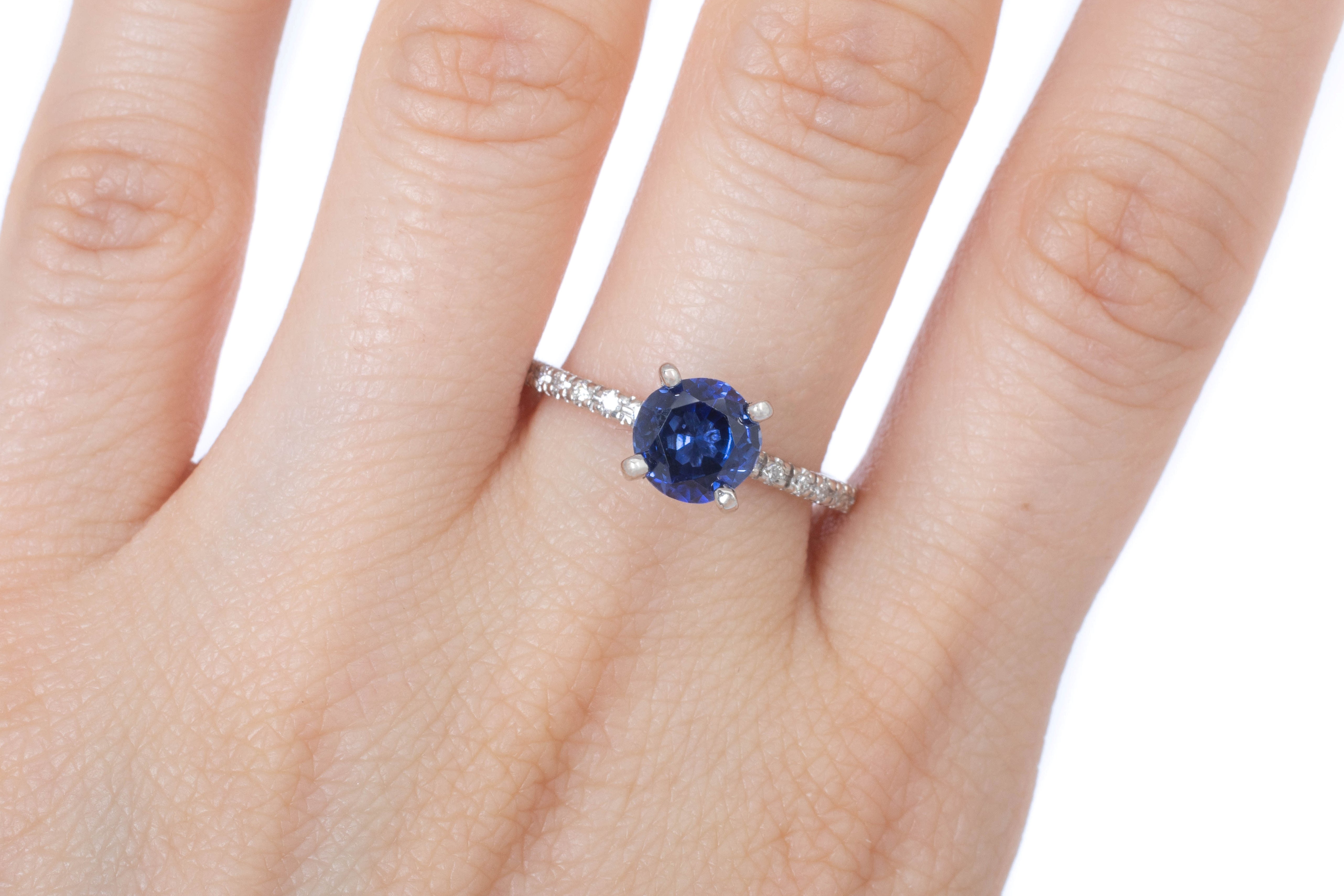 Anillo Oro Blanco Zafiro 1.60 ct y Diamante Lateral .12 ctw