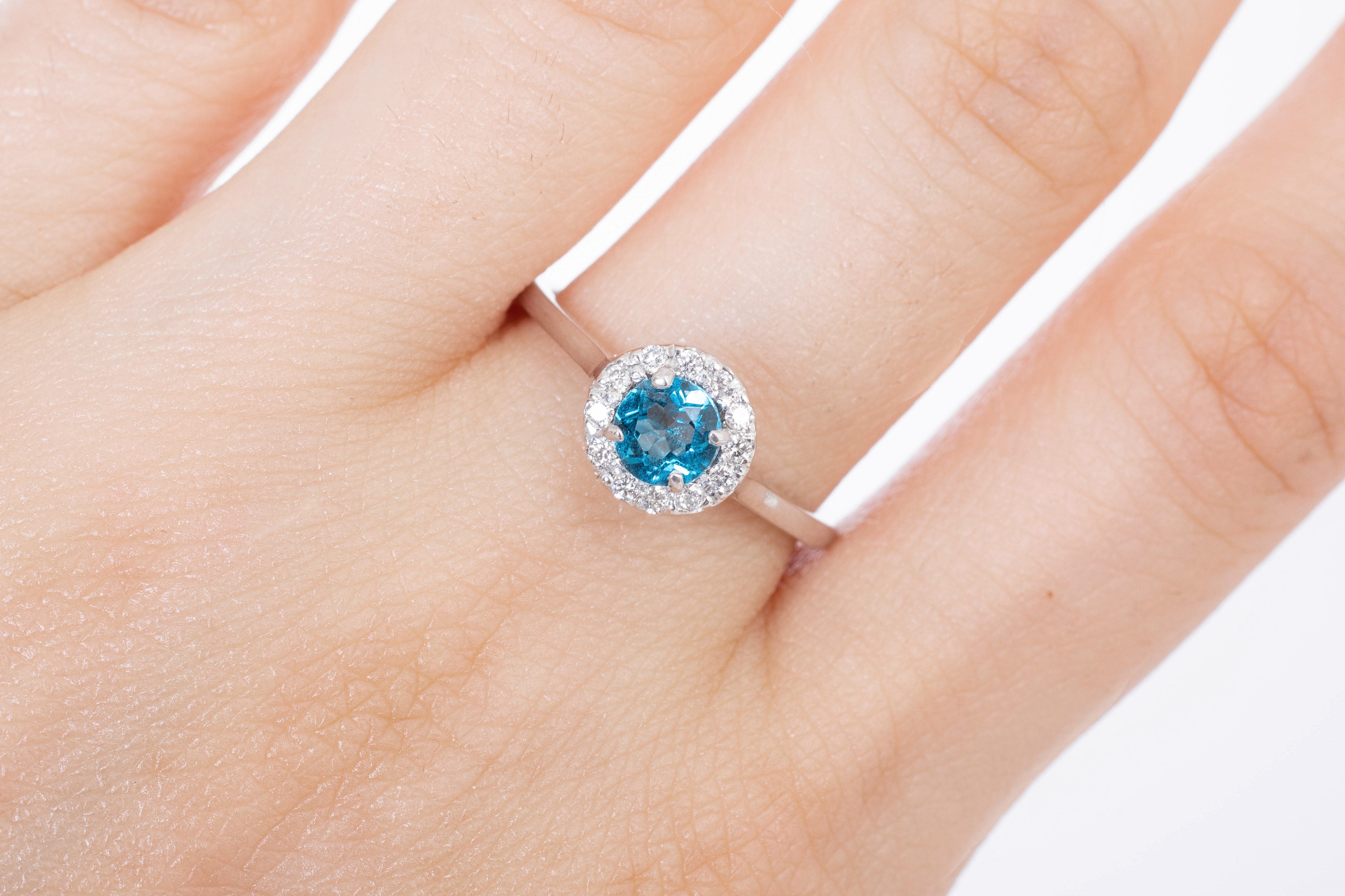 Anillo Oro Blanco Topacio London Blue .55 ct y Diamantes .13 ctw