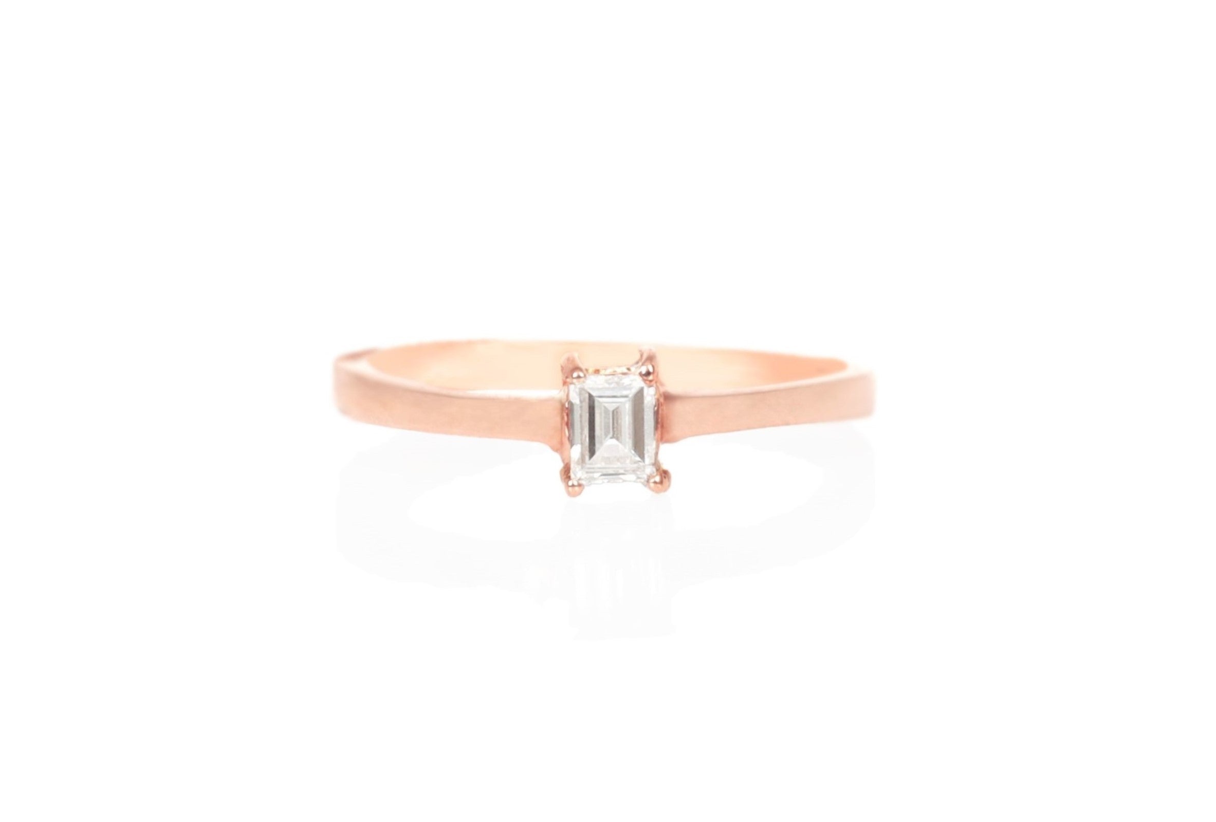 Solitario Oro Rosa Diamante Baguette .25 ct