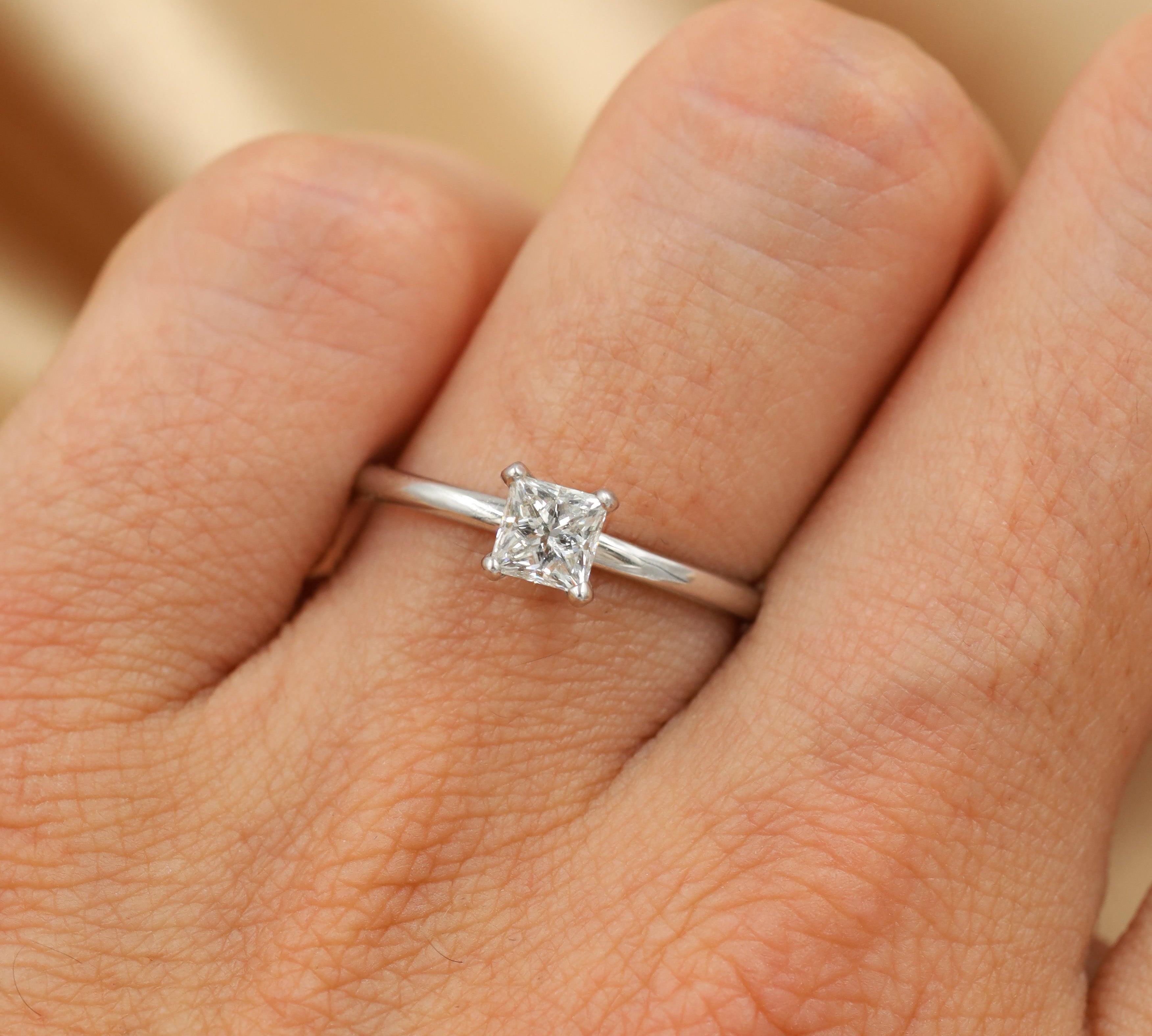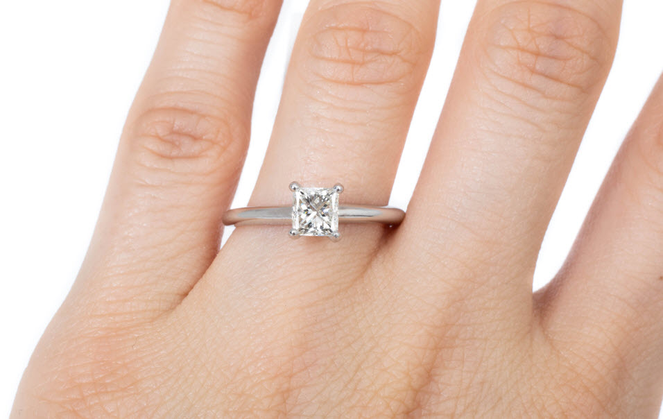 Anillo de Compromiso Diamante Princess .15 ct, Diamantes Pavé .12 ctw