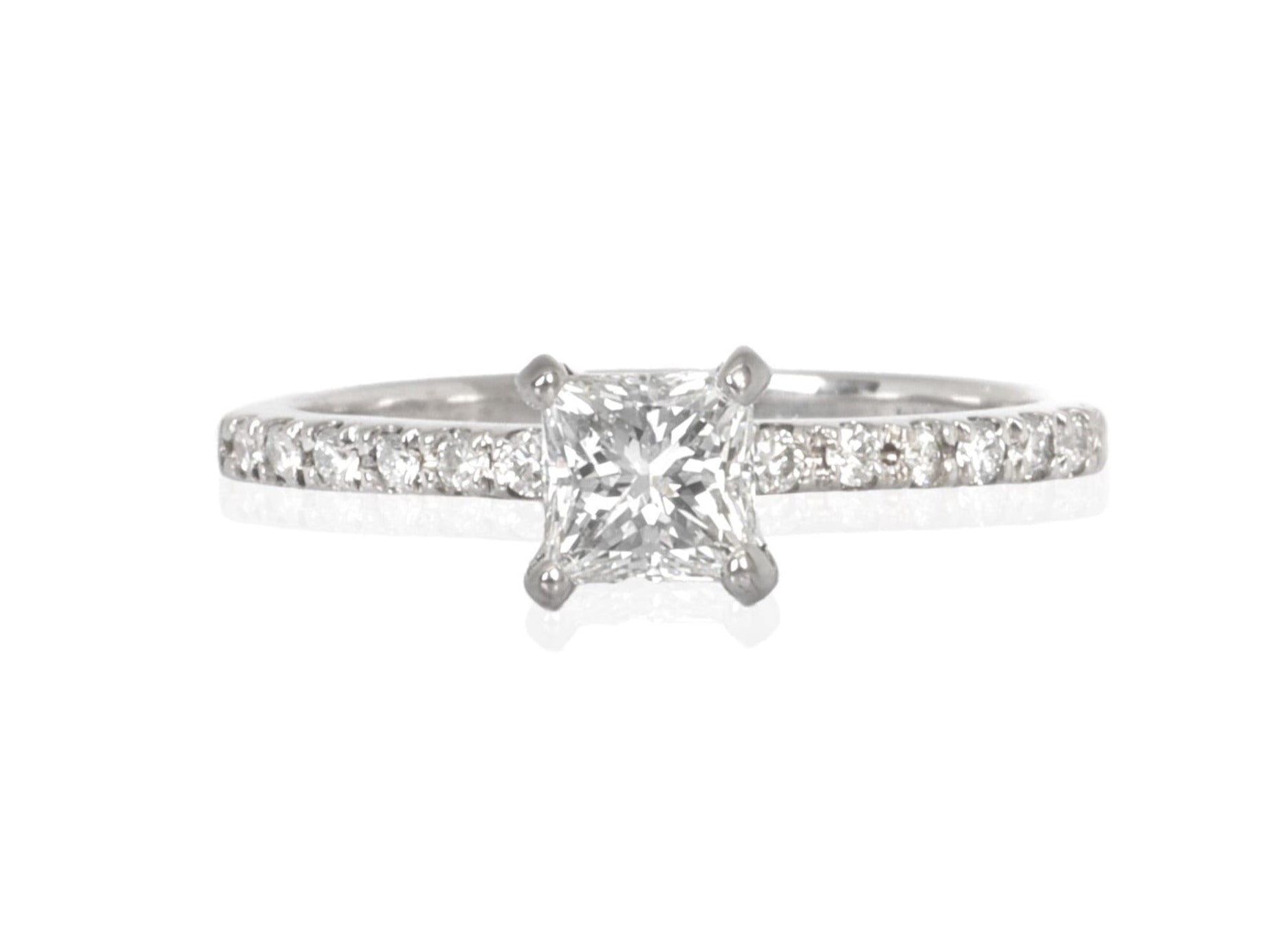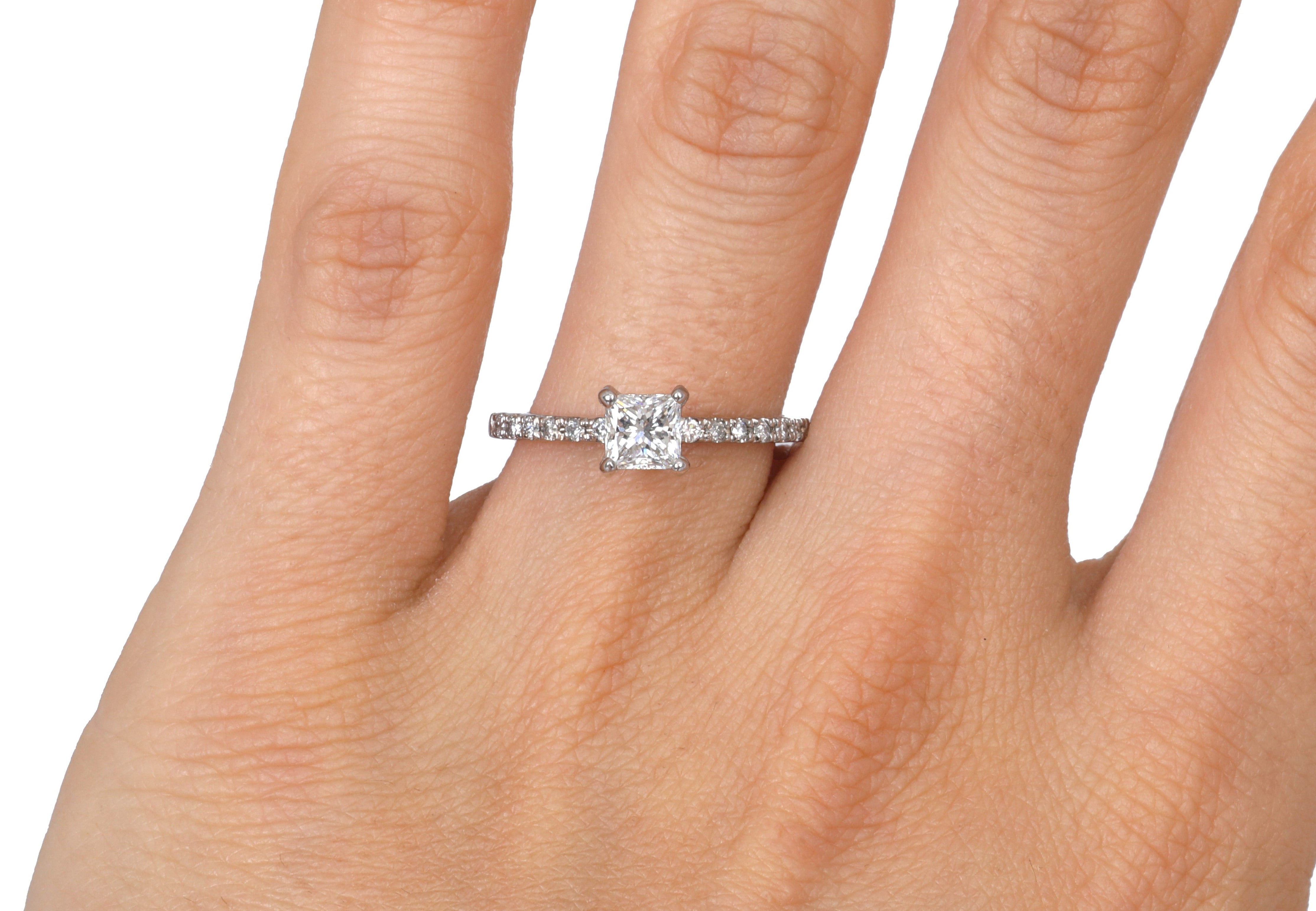 Anillo Diamante Princess .53 ct y Diamanantes Pavé .12 ctw