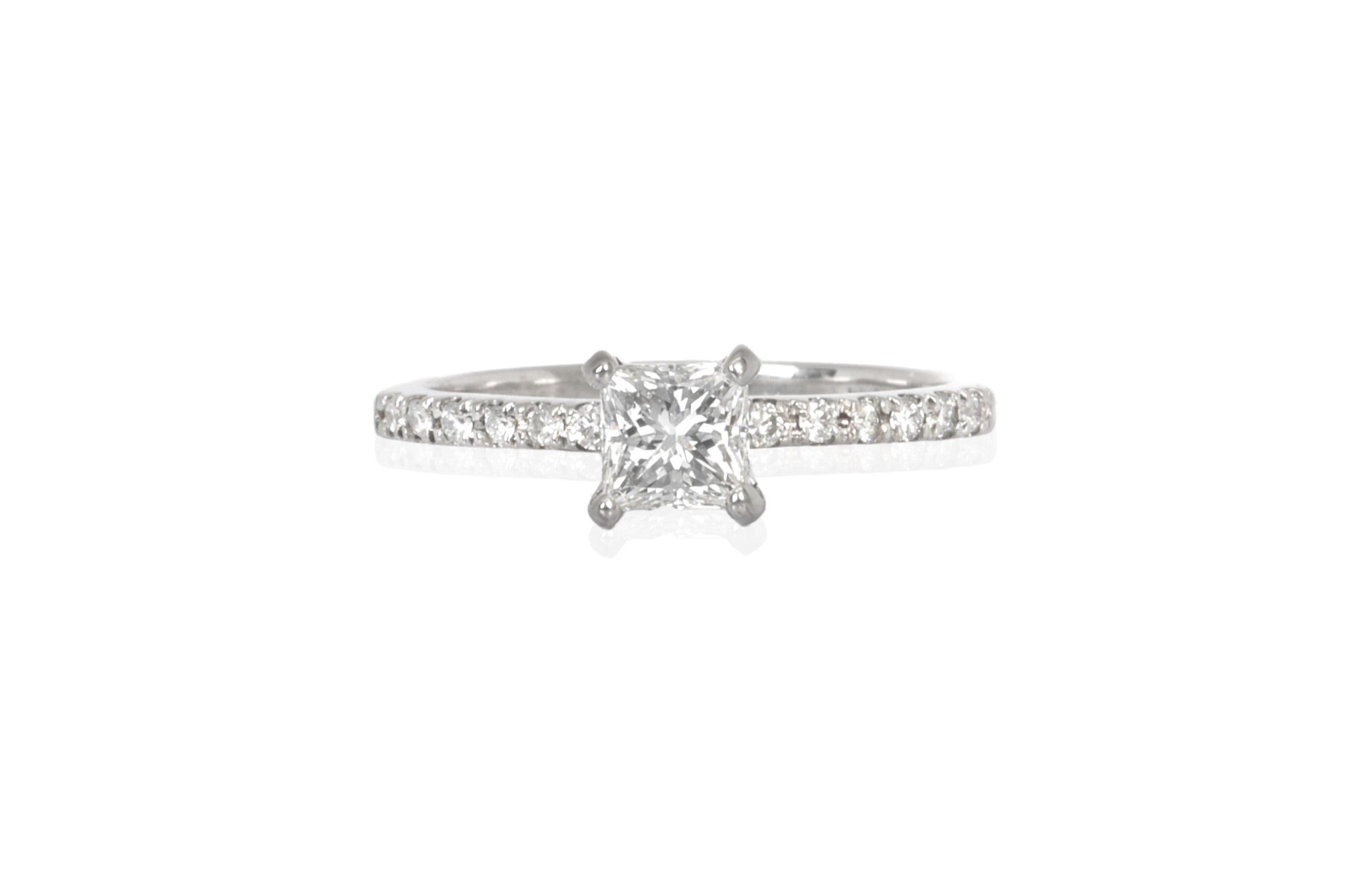 Anillo Diamante Princess .53 ct y Diamanantes Laterales .12 ctw