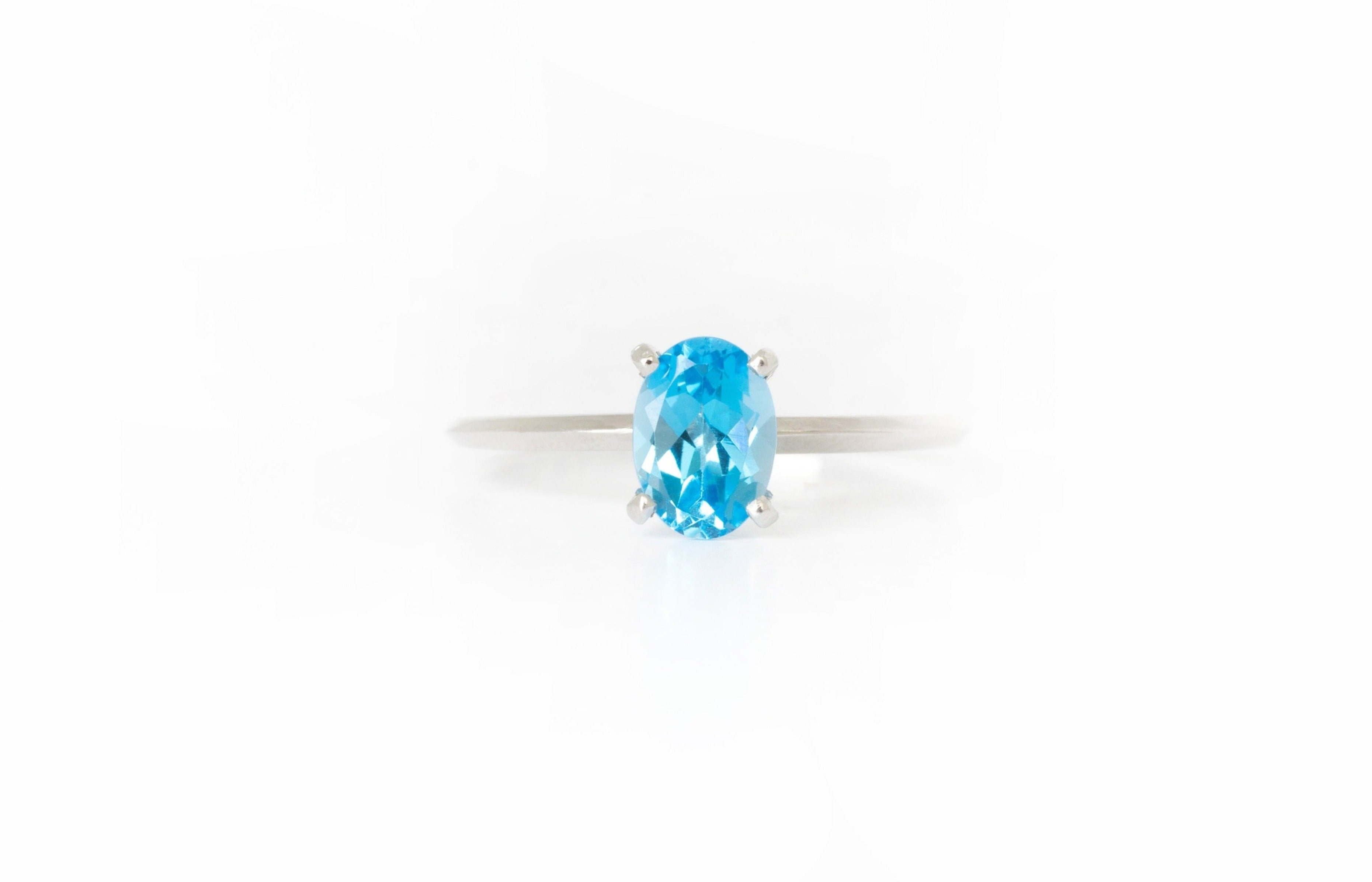 Solitario Oro Blanco Topacio Azul 1.00 ct