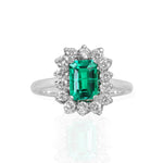 Anillo Oro Blanco Esmeralda 1.00 ct y Diamantes Halo .42 ctw