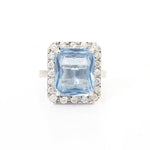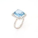 Anillo en Oro Blanco de 14k, Aguamarina 4.00 ct y Diamante .40 ctw (20 diamantes redondos de .02 ct).