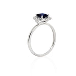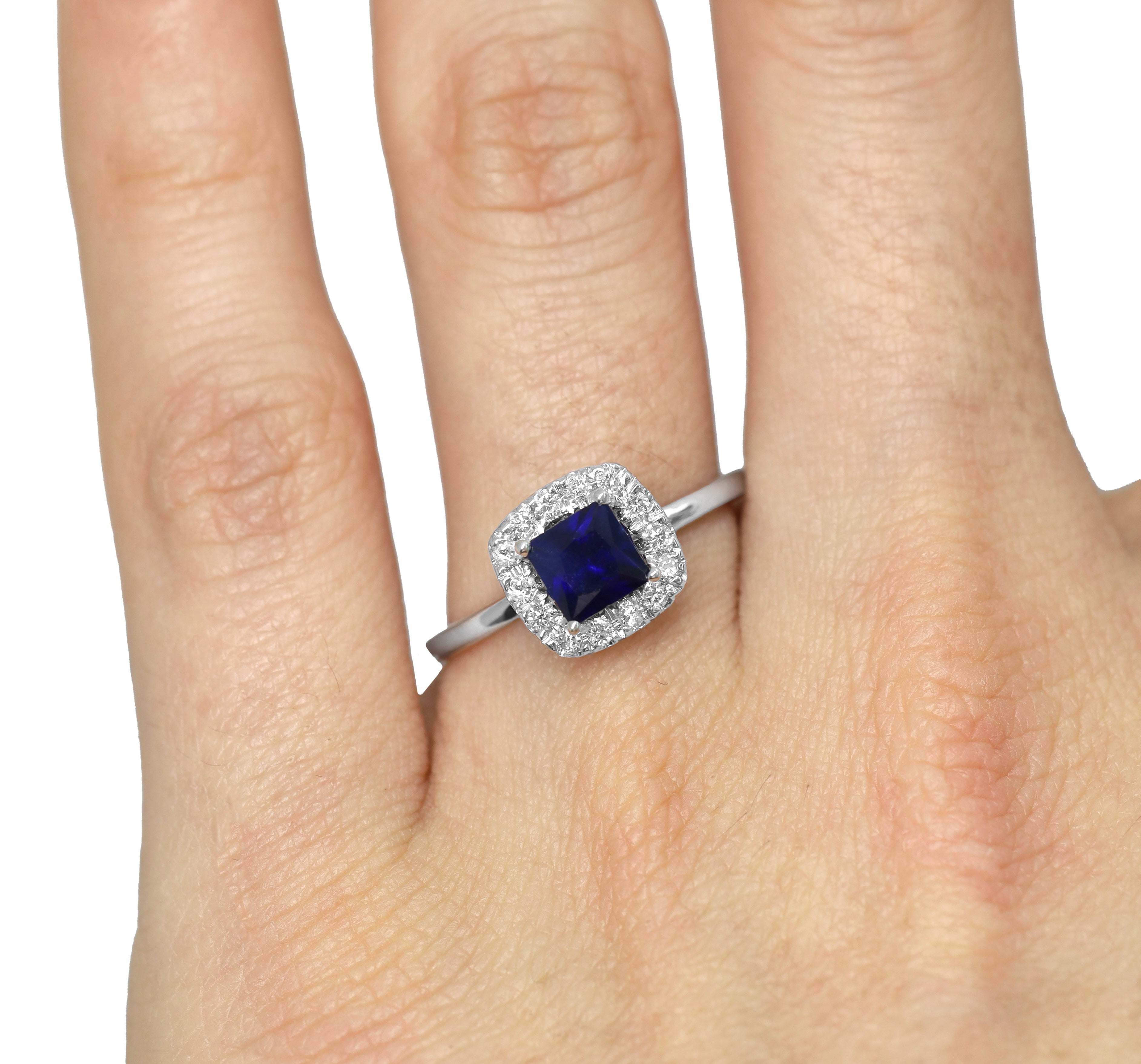 Anillo Oro Blanco Zafiro Cushion 1.00 ct y Diamantes Halo .16 ctw