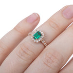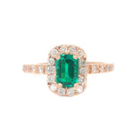 Anillo Oro Rosa Esmeralda 0.55 ct y Diamantes Halo-Pavé