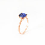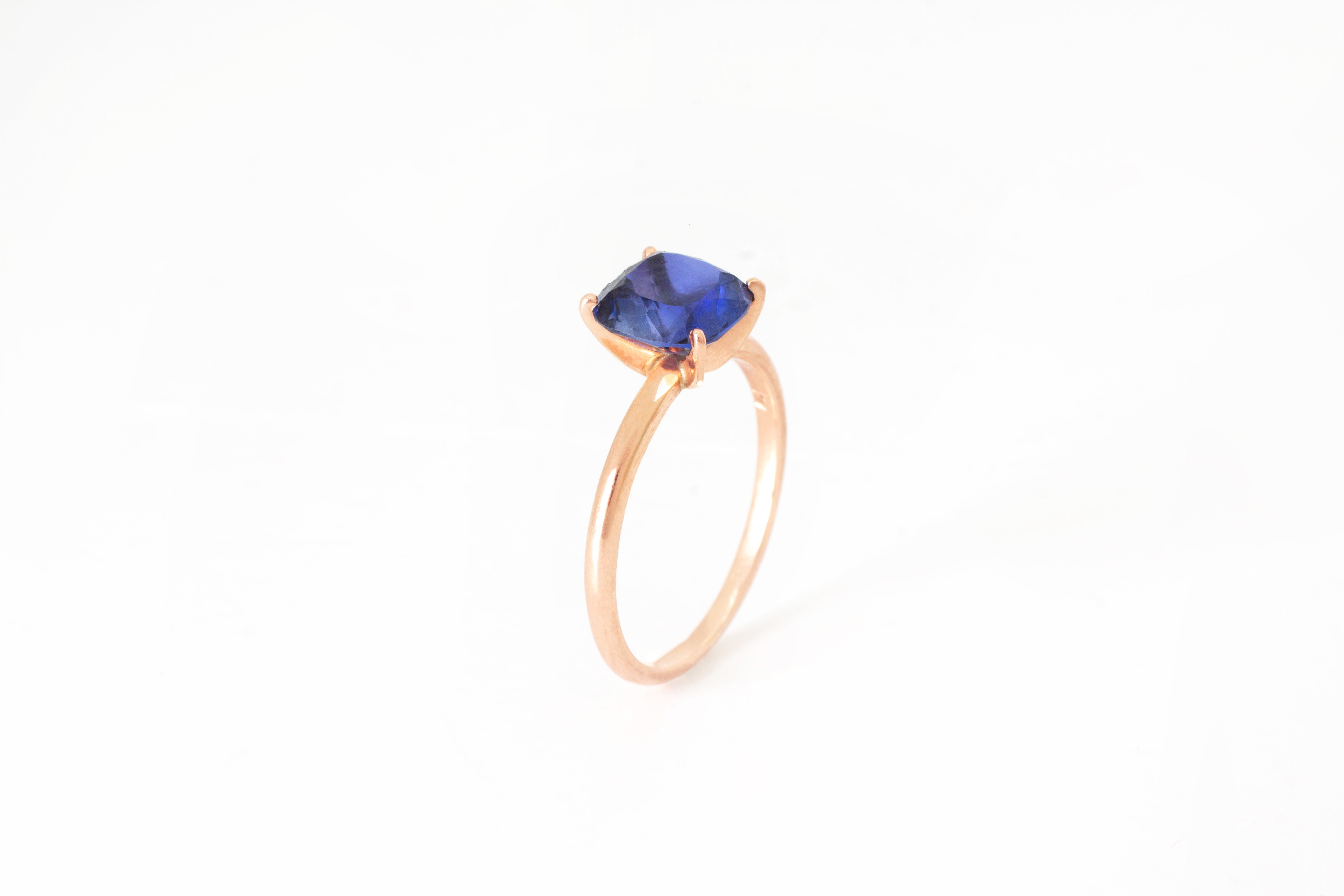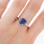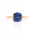 Solitario en oro rosa de 14k con zafiro corte cushion de 3.00 quilates.