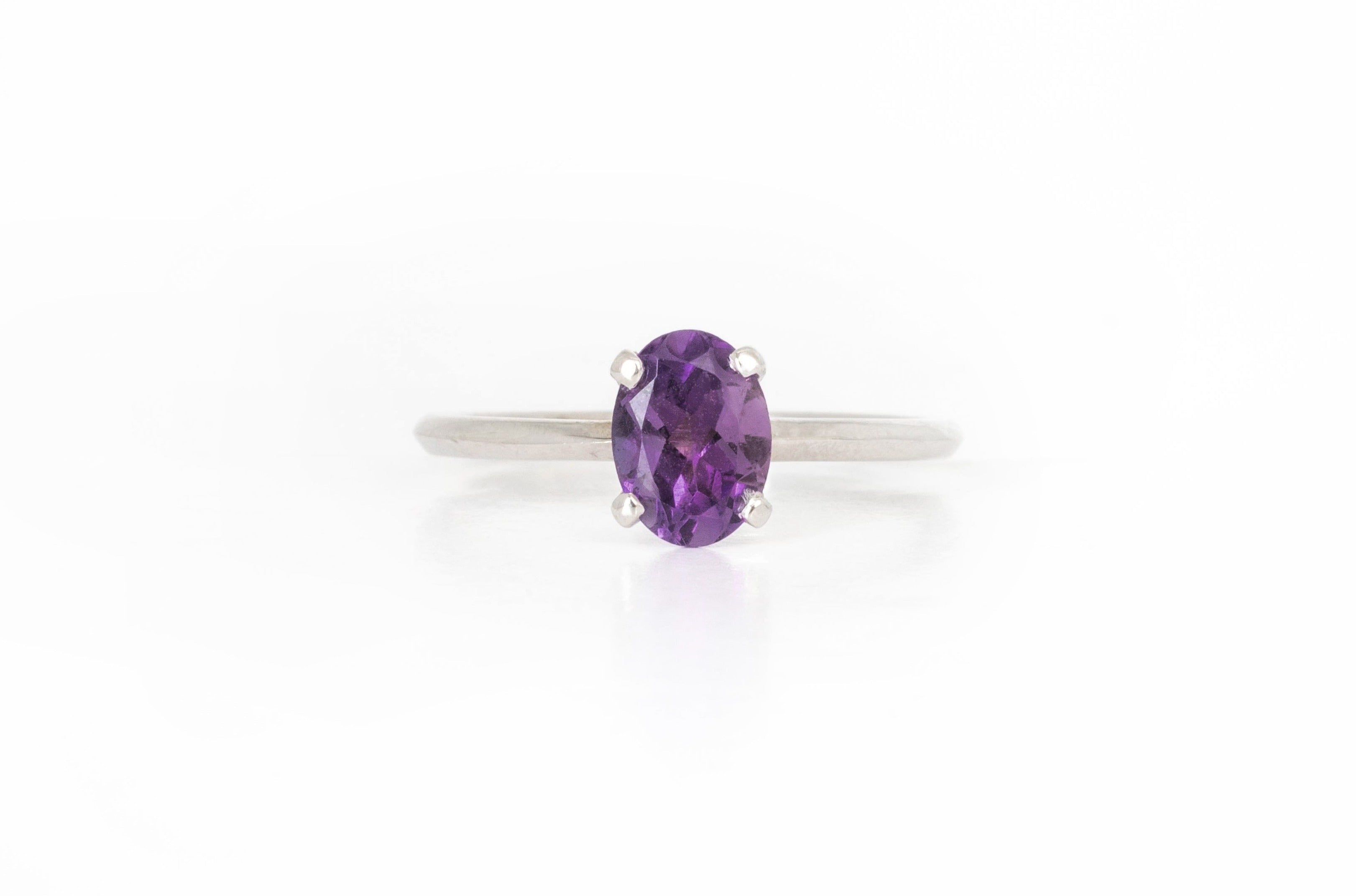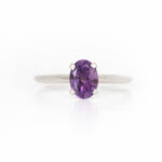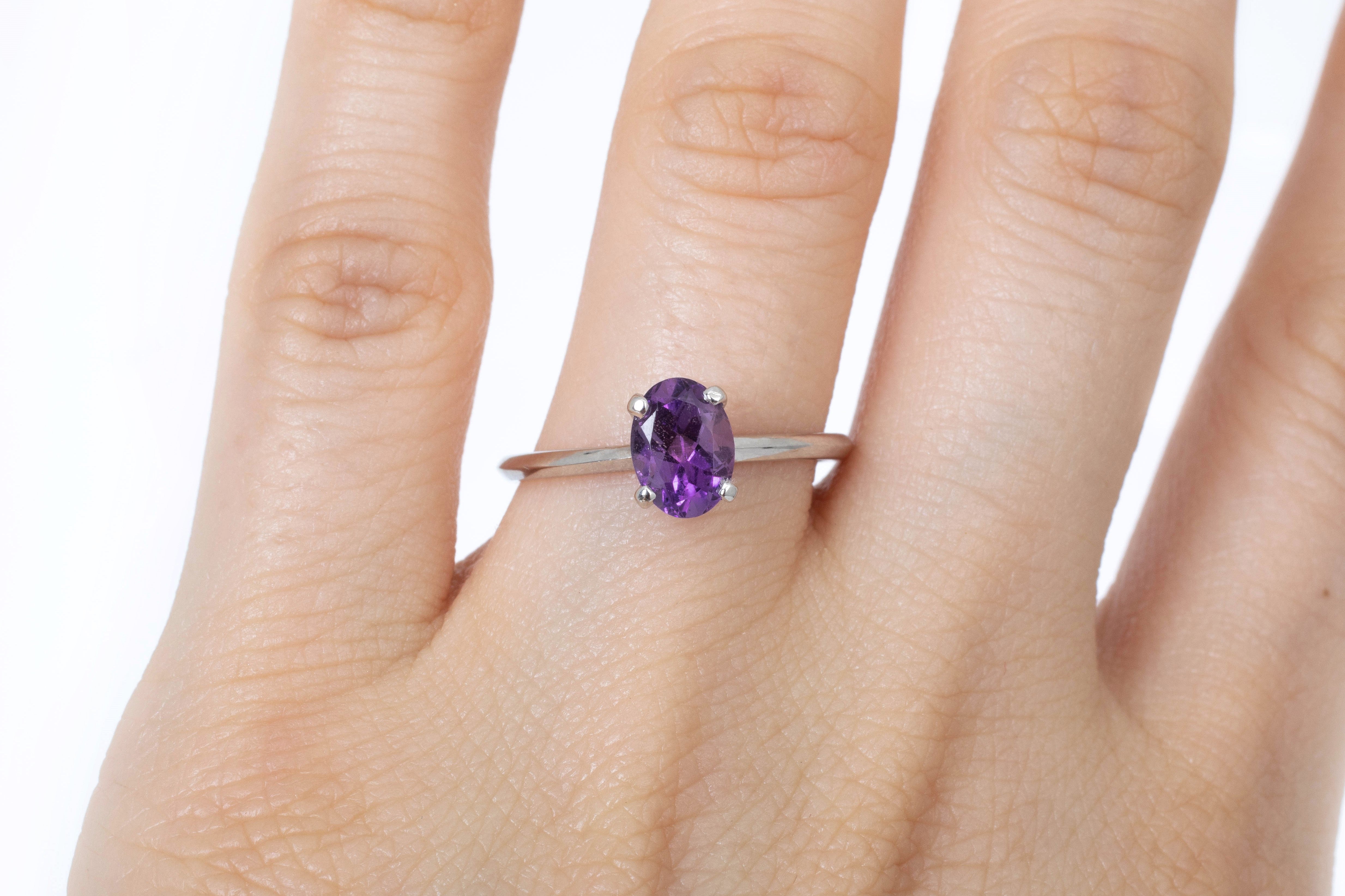Solitario en Oro Blanco de 14k con Amatista (piedra de nacimiento de Febrero) Oval 1.00 ct.