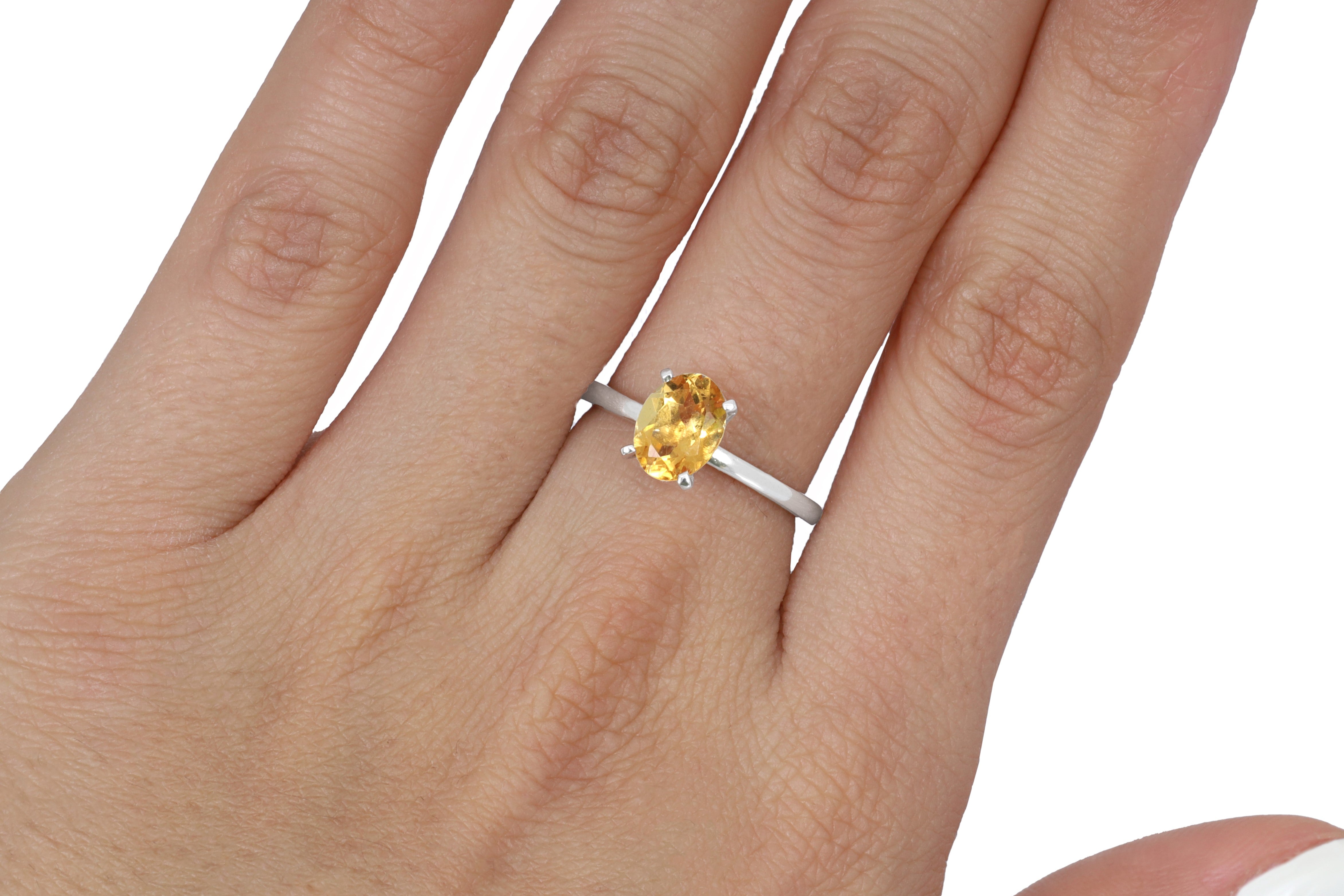 Solitario en Oro Blanco de 14k con Citrina Oval 1.10 ct.