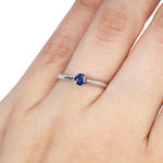 Solitario en oro blanco de 14k con zafiro corte oval de .65 quilates.