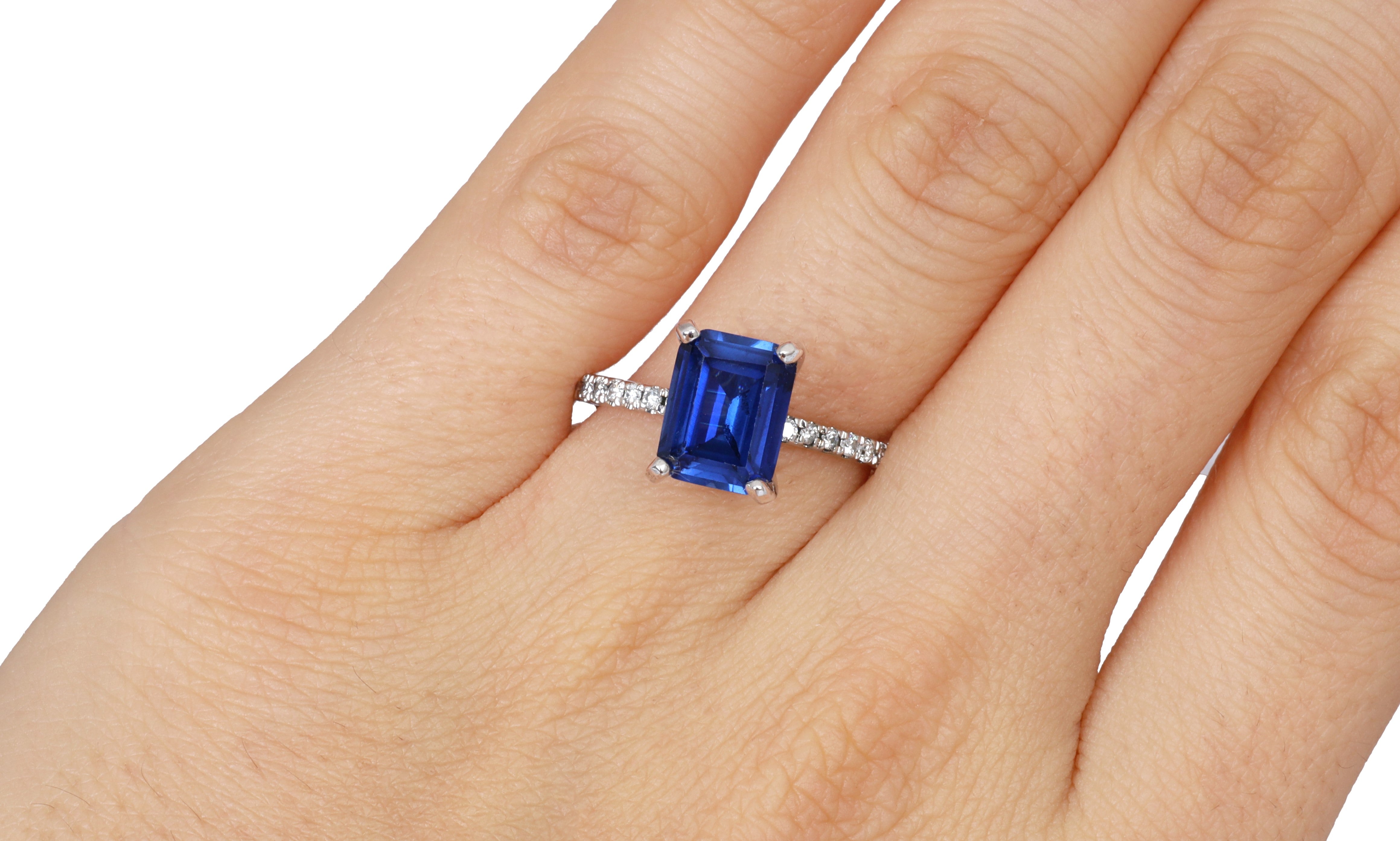 Anillo Oro Blanco Zafiro 3.00 ct y Diamante Lateral .12 ctw