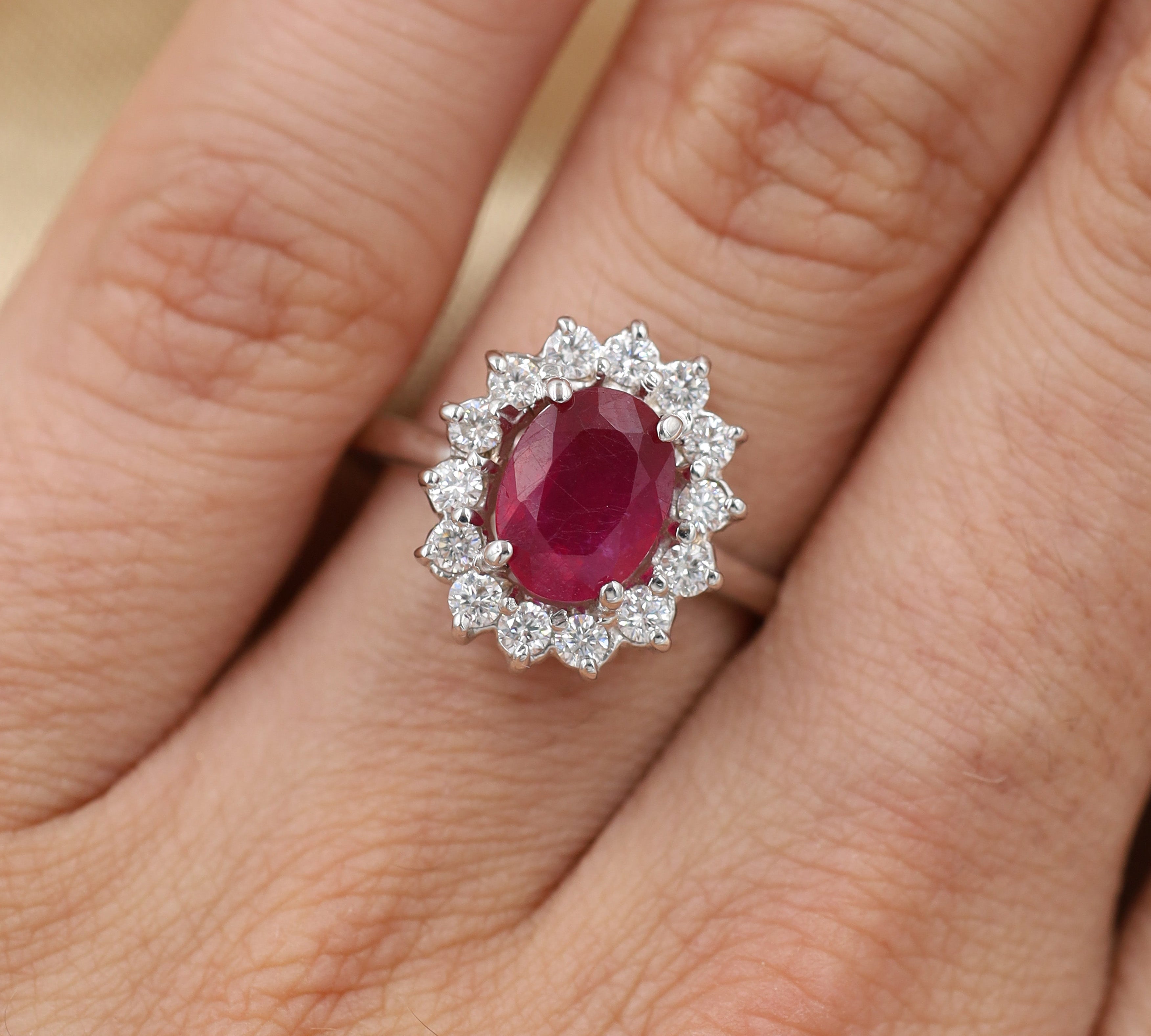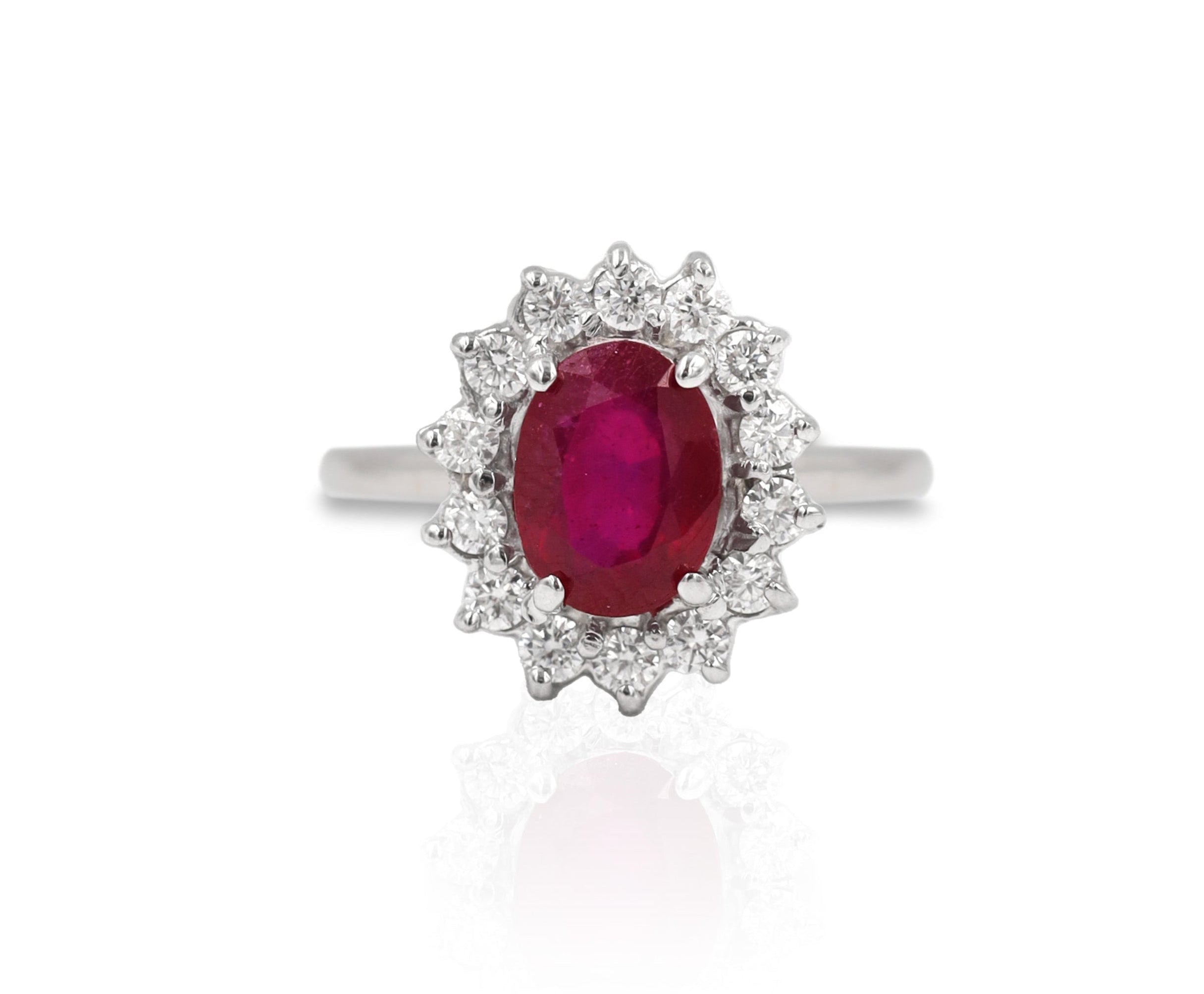 Anillo Oro Blanco Rubí 2.00 ct y Diamantes Halo .42 ctw