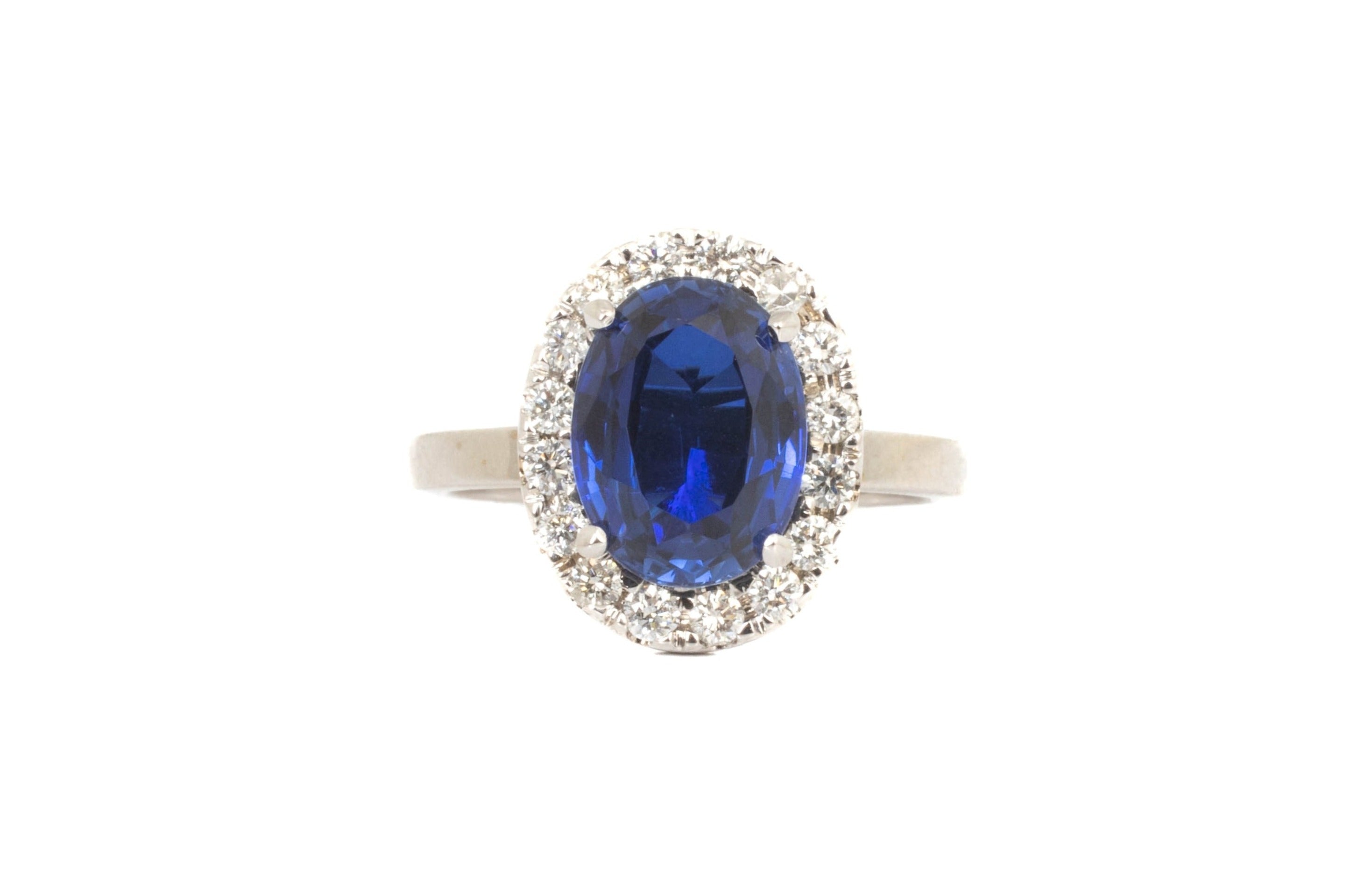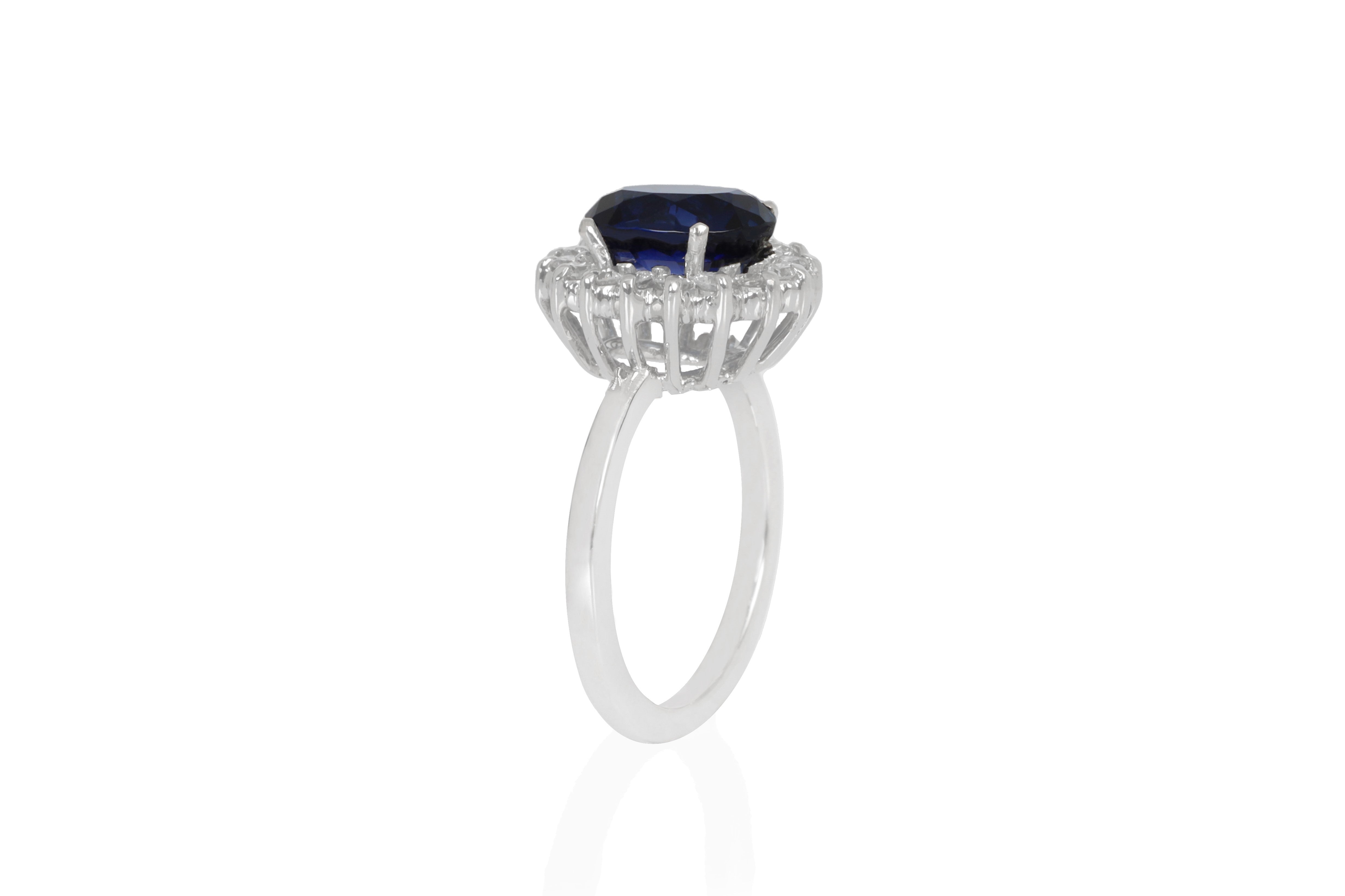 Anillo Oro Blanco Zafiro 2.80 ct y Diamantes Halo .48 ctw