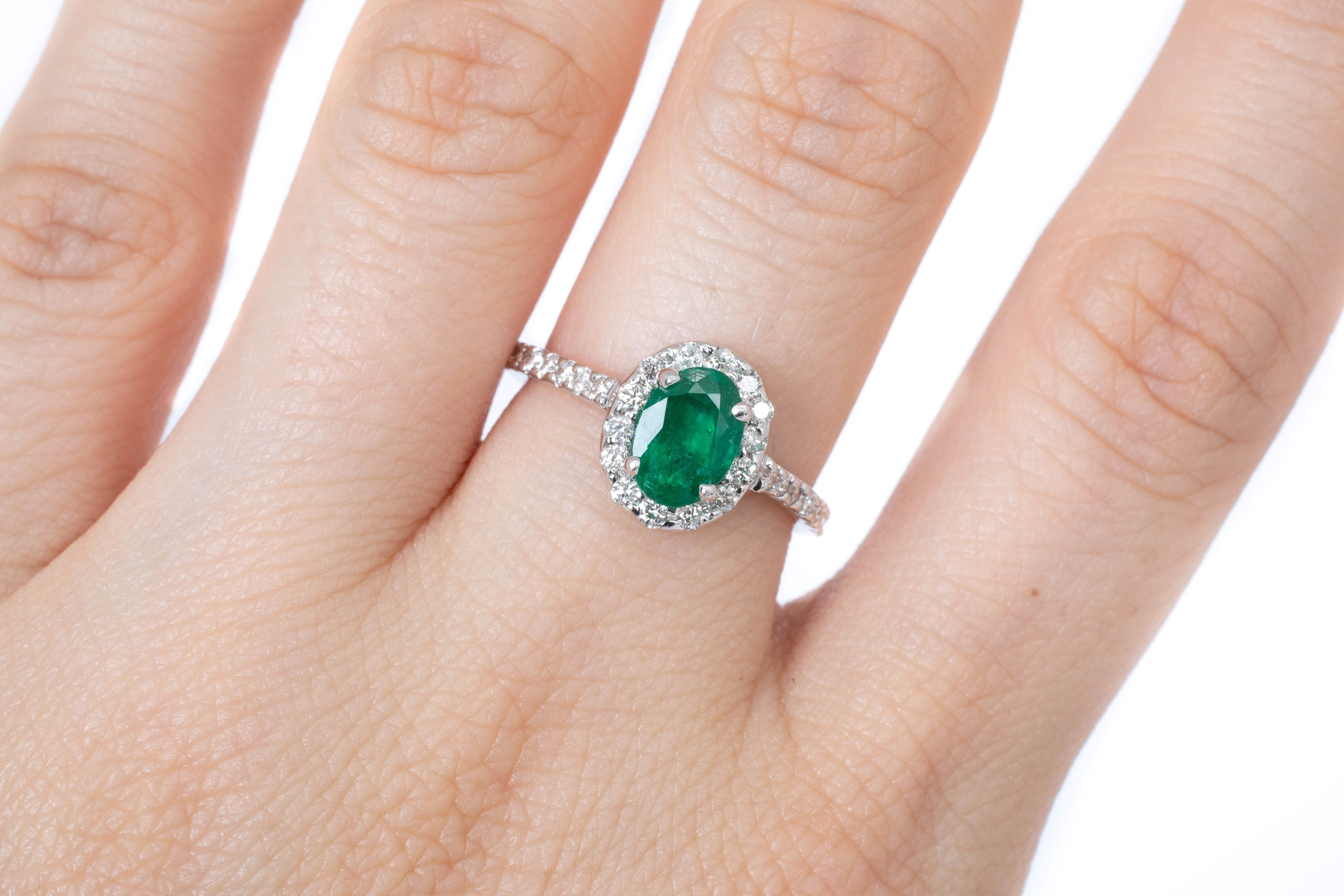 Anillo Oro Blanco Esmeralda 1.00 ct y Diamantes Halo .42 ctw