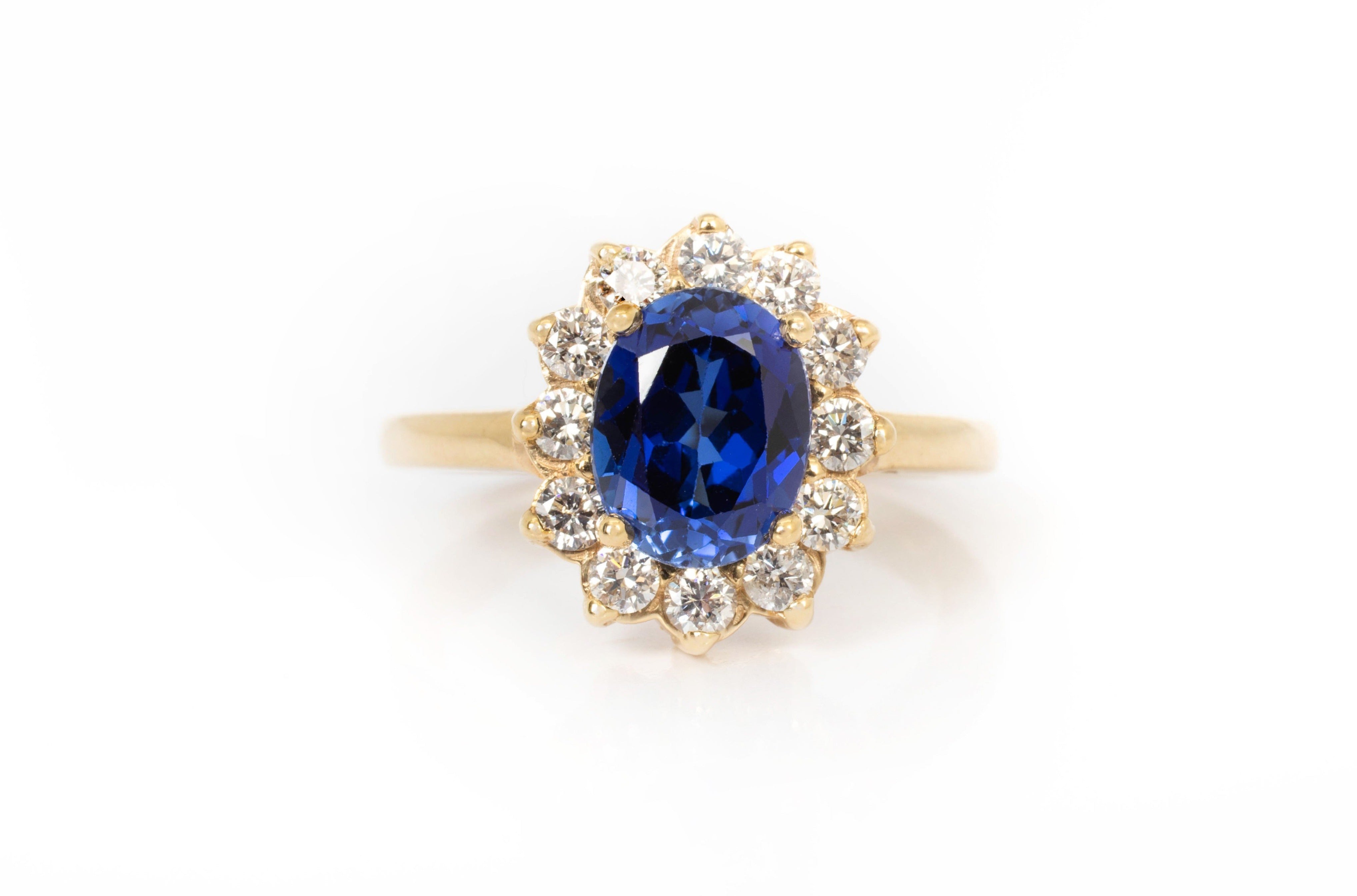 Anillo Oro Amarillo Zafiro 1.80 ct y Diamantes Halo .42 ctw