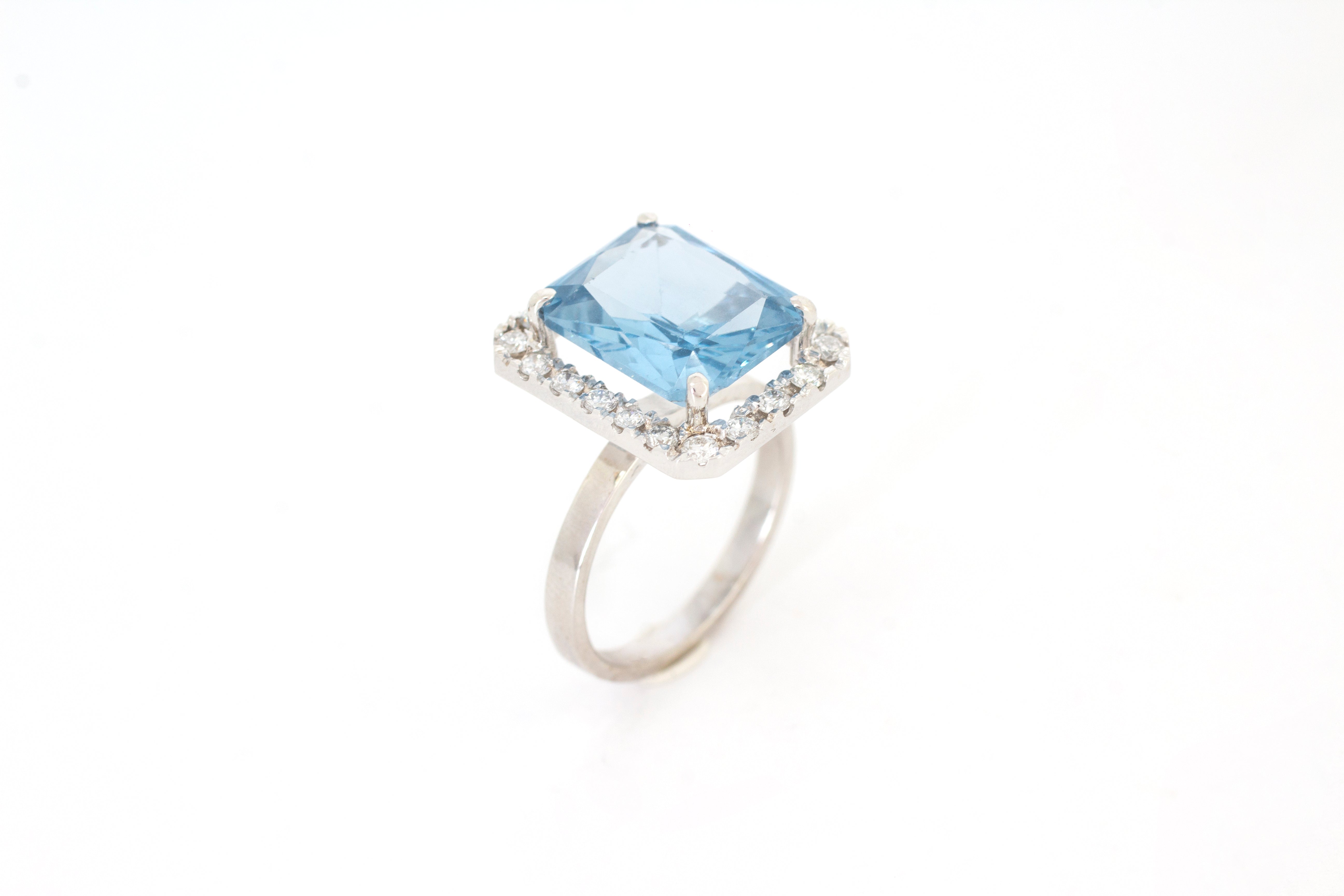 Anillo Oro Blanco Aguamarina 4.00 ct y Diamante .40 ctw