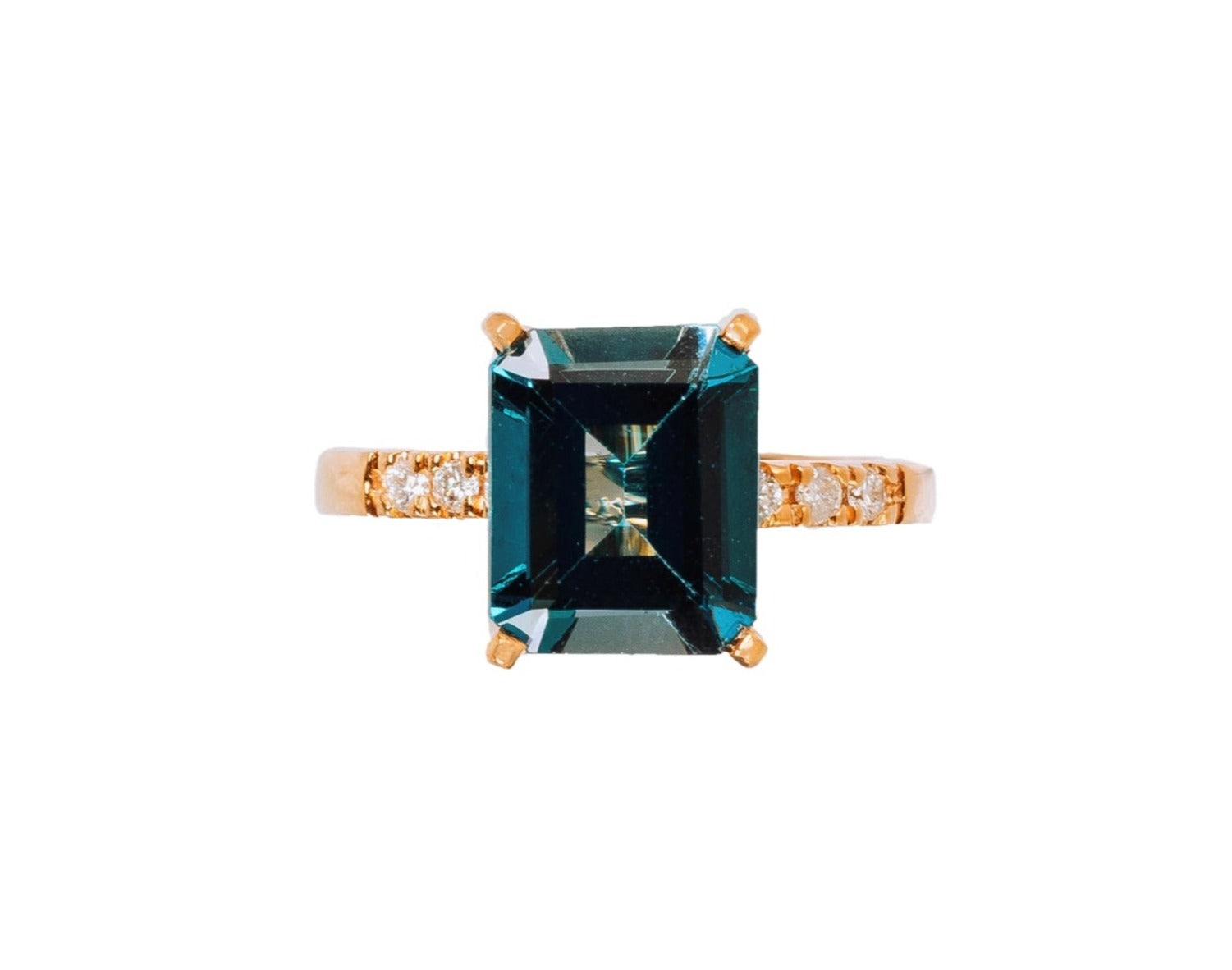 Anillo Oro Rosa Topacio London Blue 3.70 ct y Diamantes .18 ctw