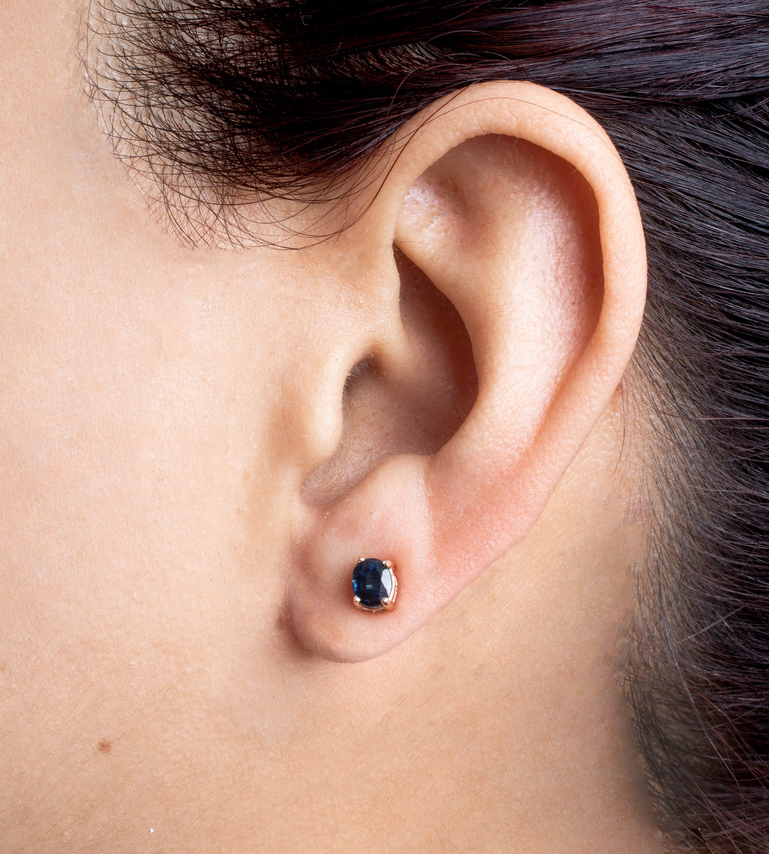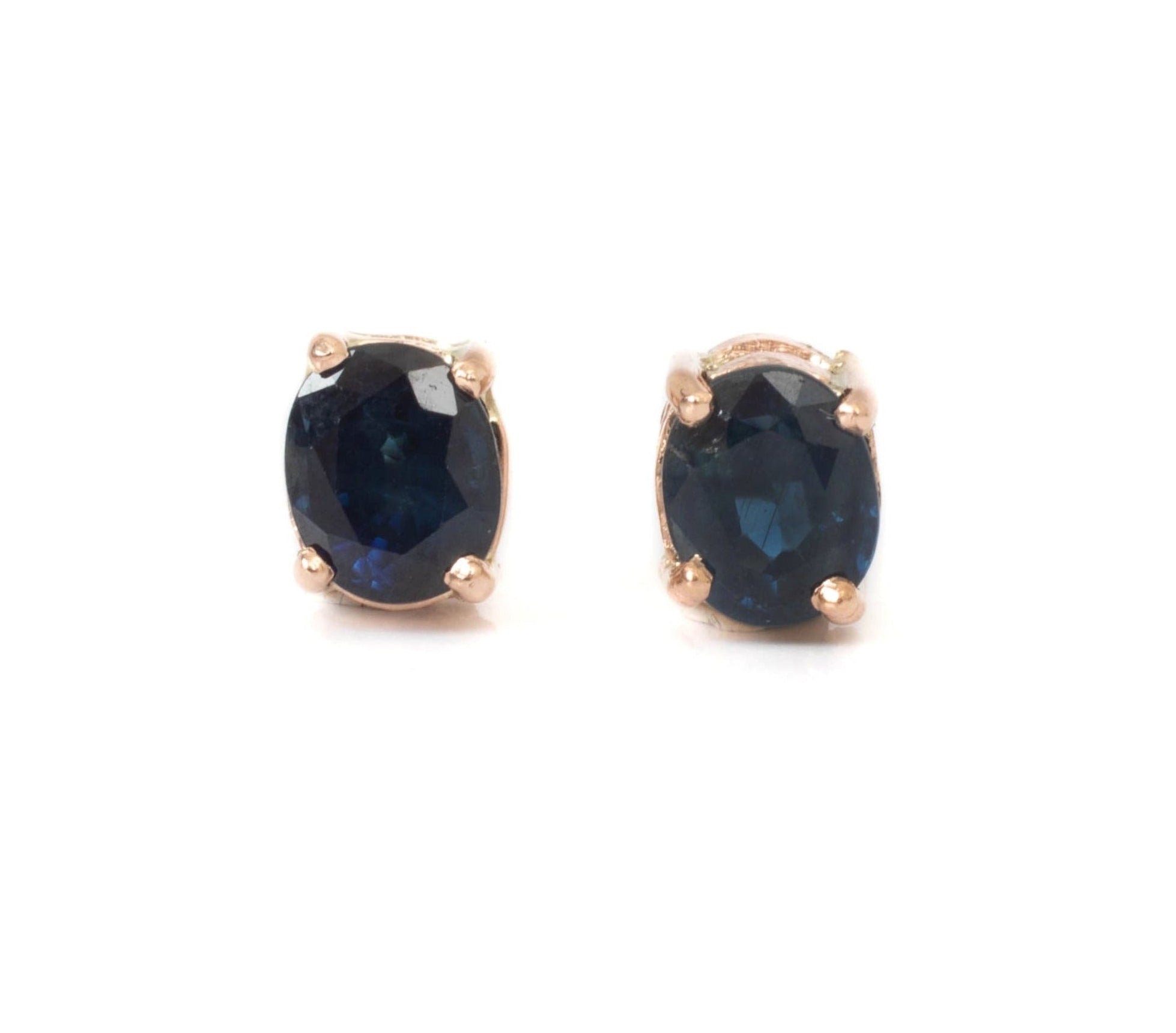 Studs en Oro Rosa de 14k con Zafiro Oval de .60 quilates c/u.