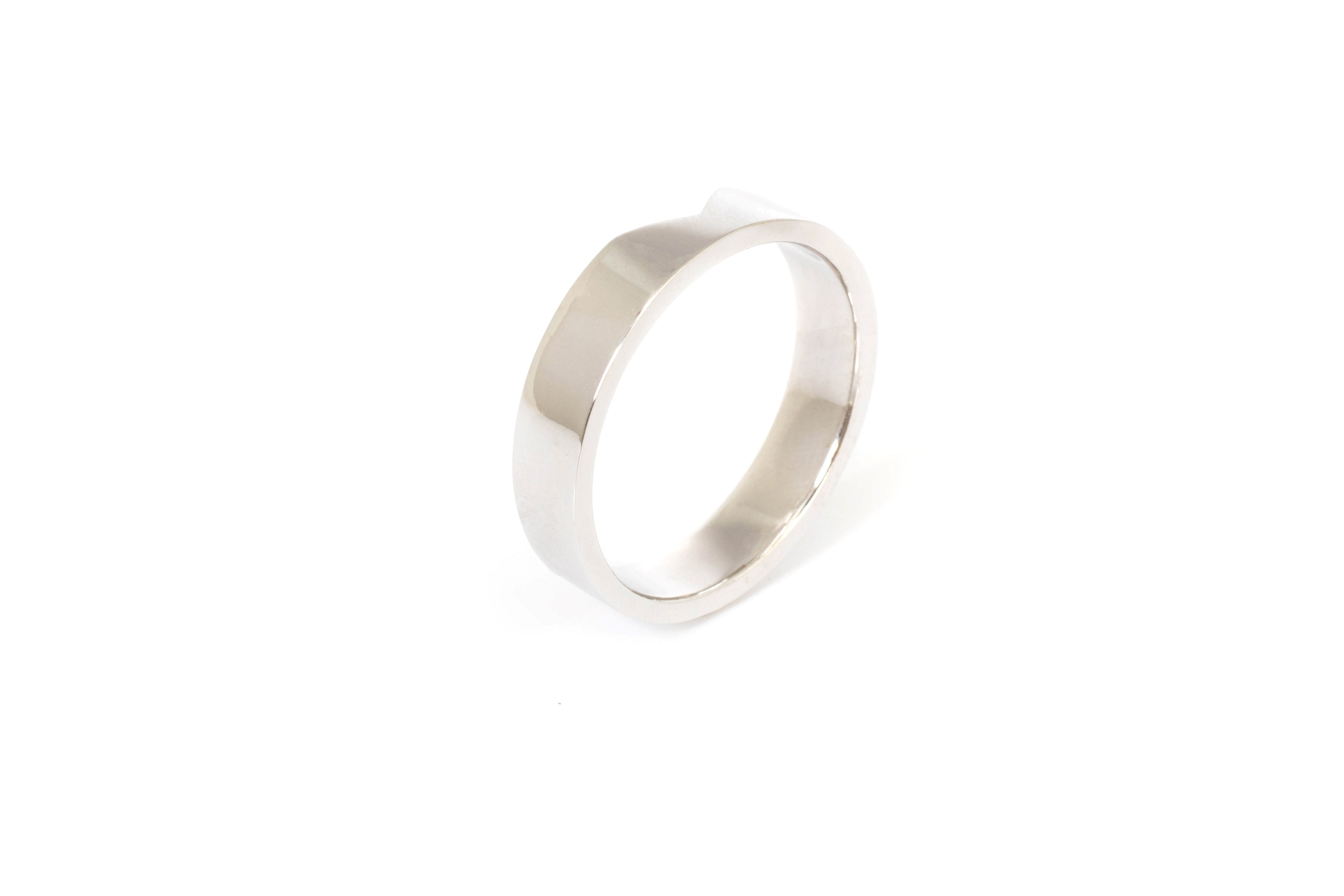 Argolla Caballero Oro Blanco 5mm con Zafiro
