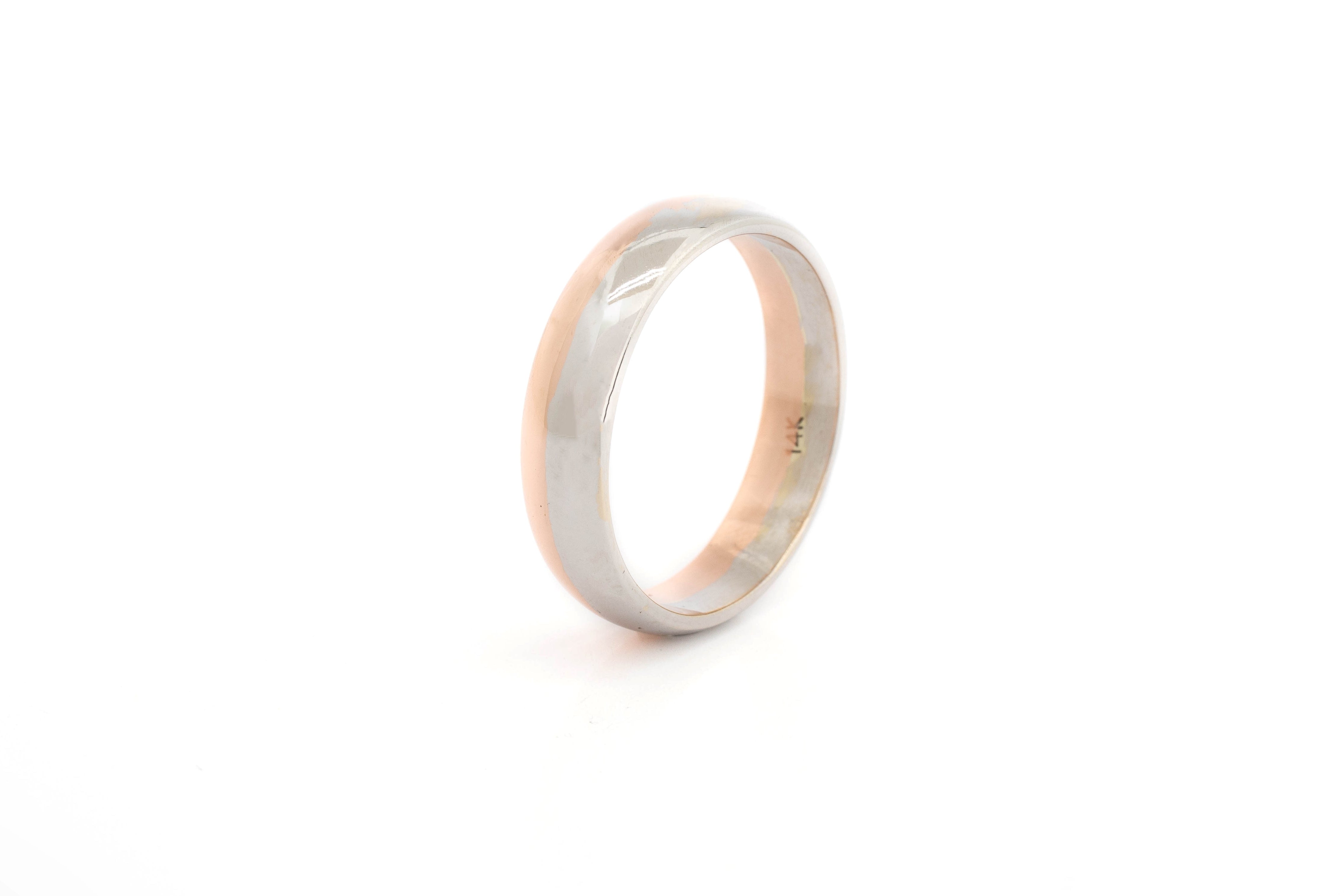 Argolla Dama Oro Combinado 4mm con Diamantes .20 ctw