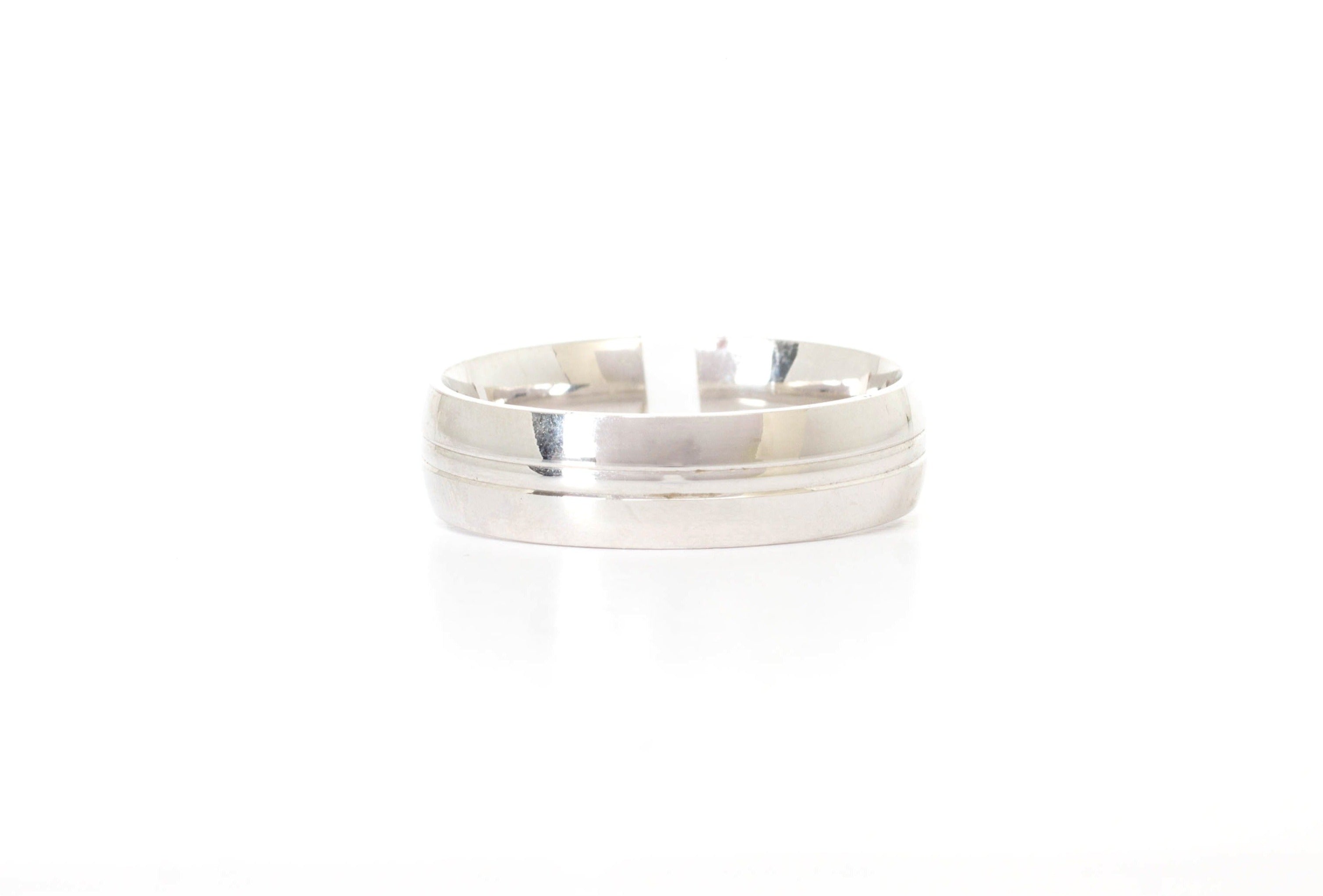 Argolla Caballero Oro Blanco 5mm con Diamante Negro