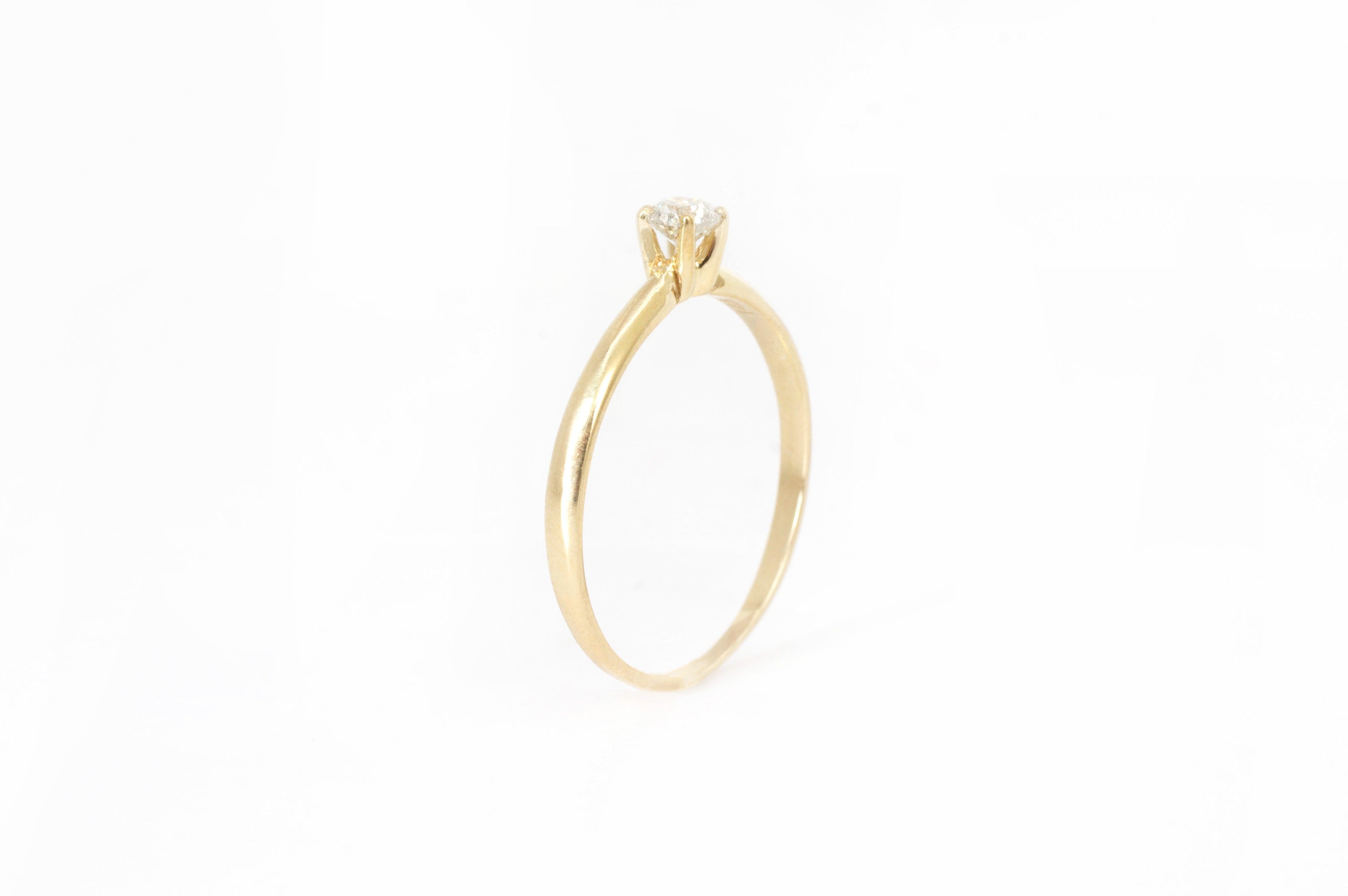 Solitario en Oro Amarillo de 14k, Diamante .15 ct. Color G, Claridad SI1, Corte Muy Bueno.