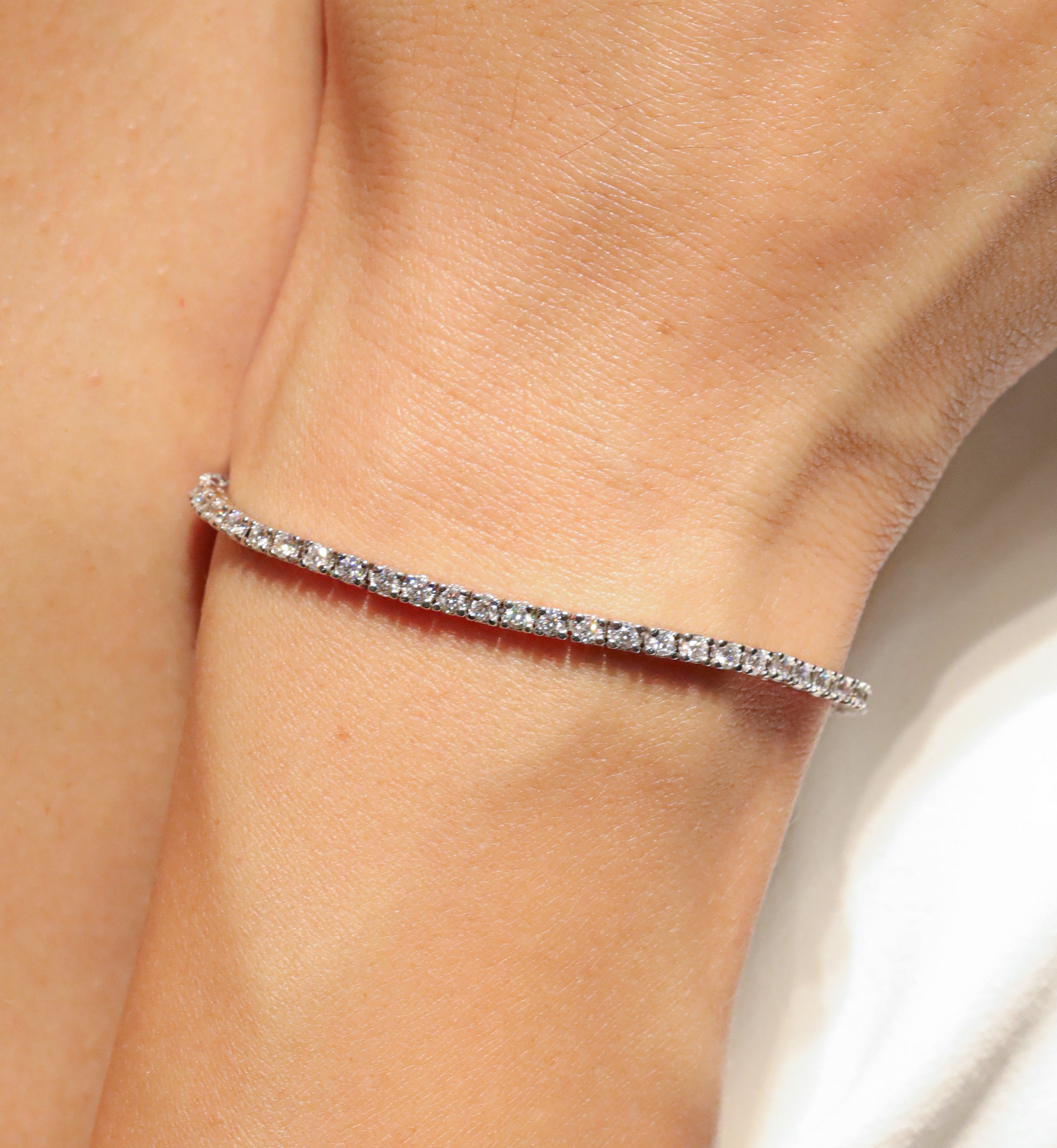 Pulsera Tennis con diamantes labgrown de 2.00 quilates en total sobre oro blanco de 14k. 18 cm de largo incluyendo el broche.