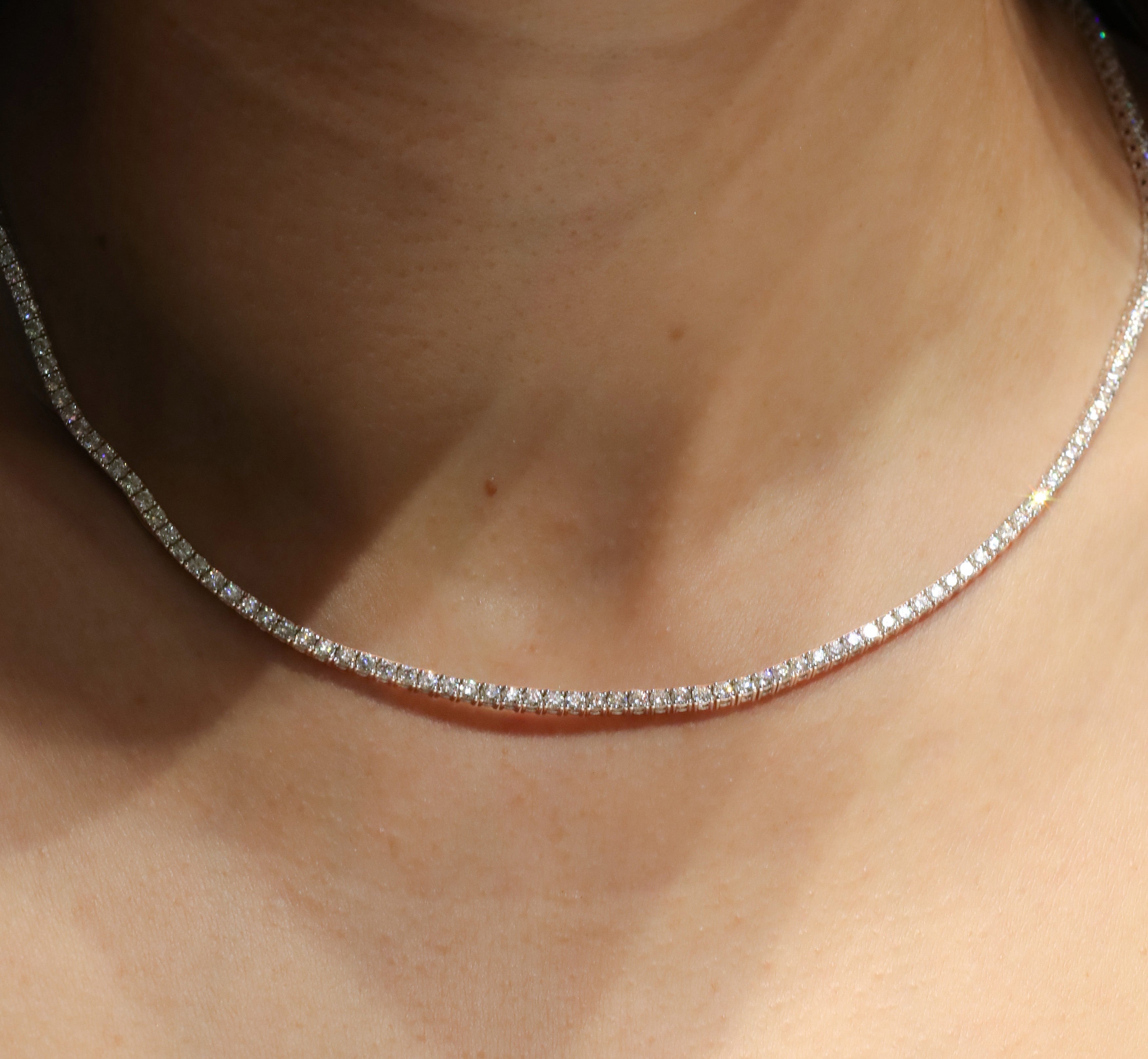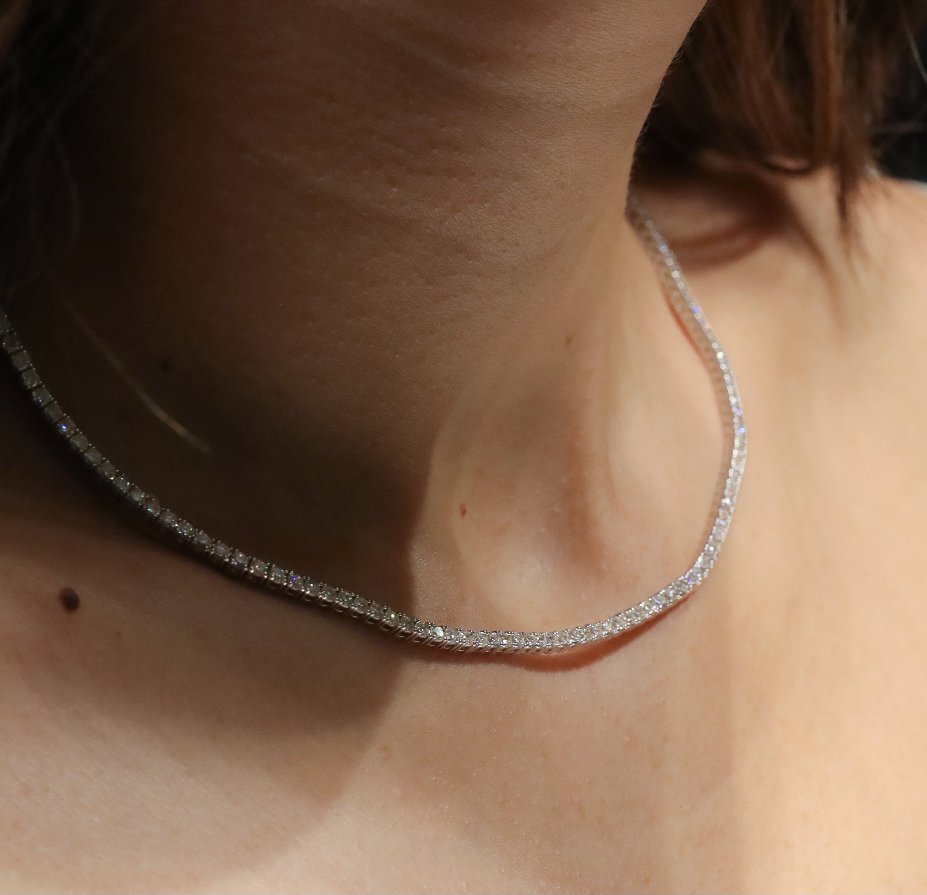 Collar Tennis con diamantes labgrown de 6.00 quilates en total sobre oro blanco de 14k. 17 pulgadas de largo.