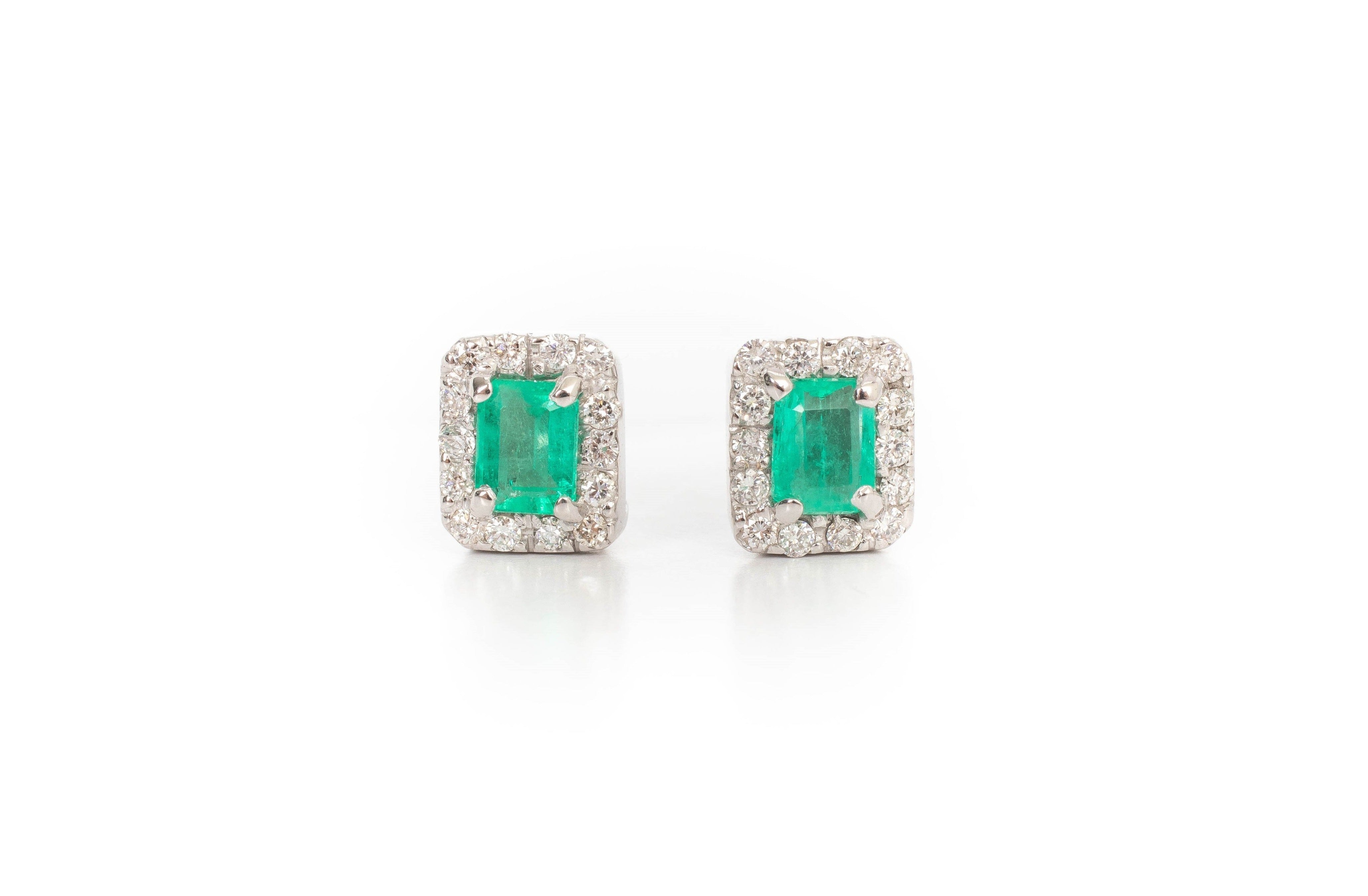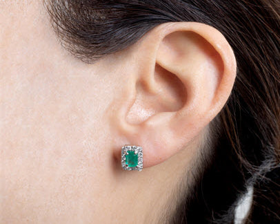 Aretes en Oro Blanco con Esmeraldas .90 ctw y Diamantes .28 ctw