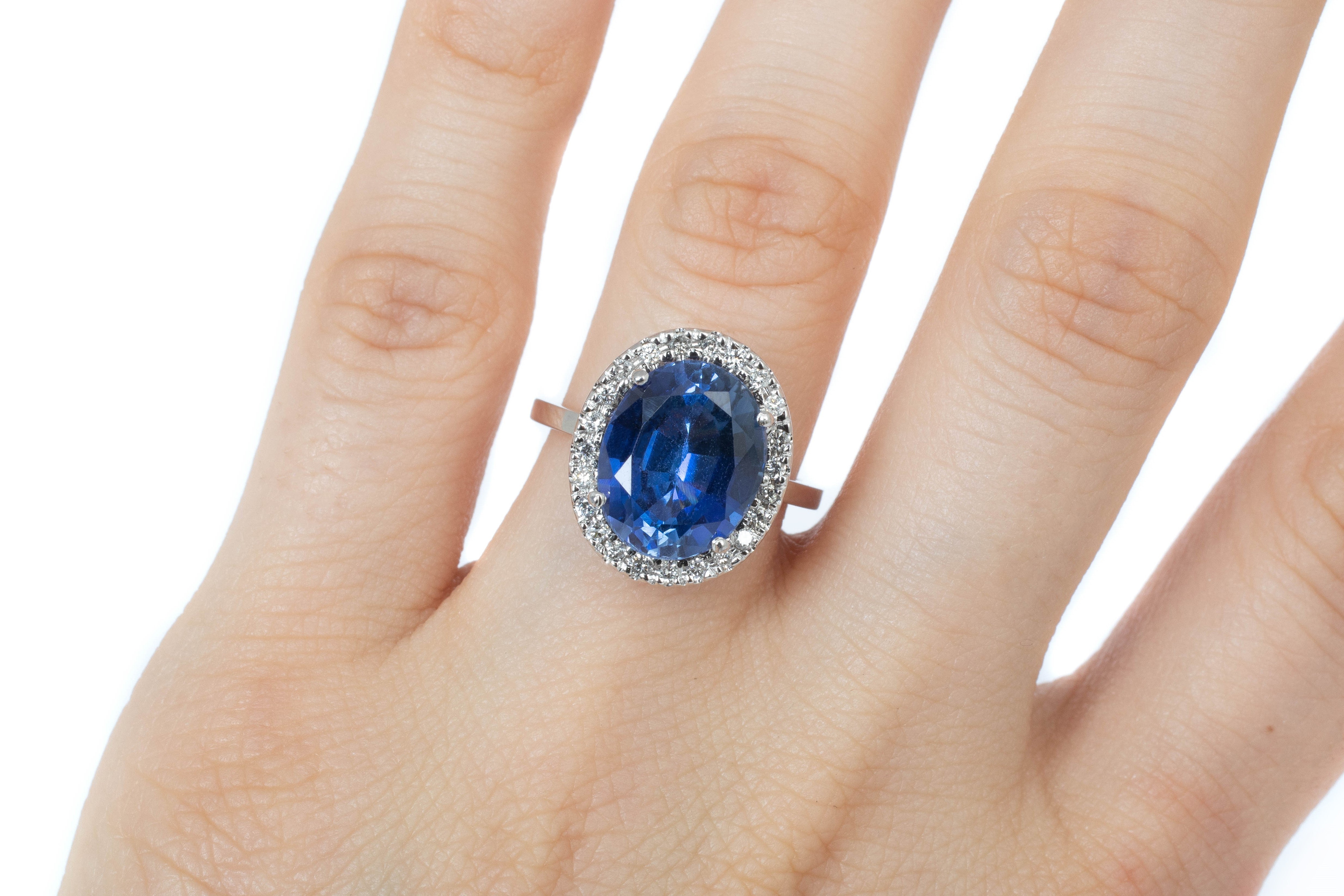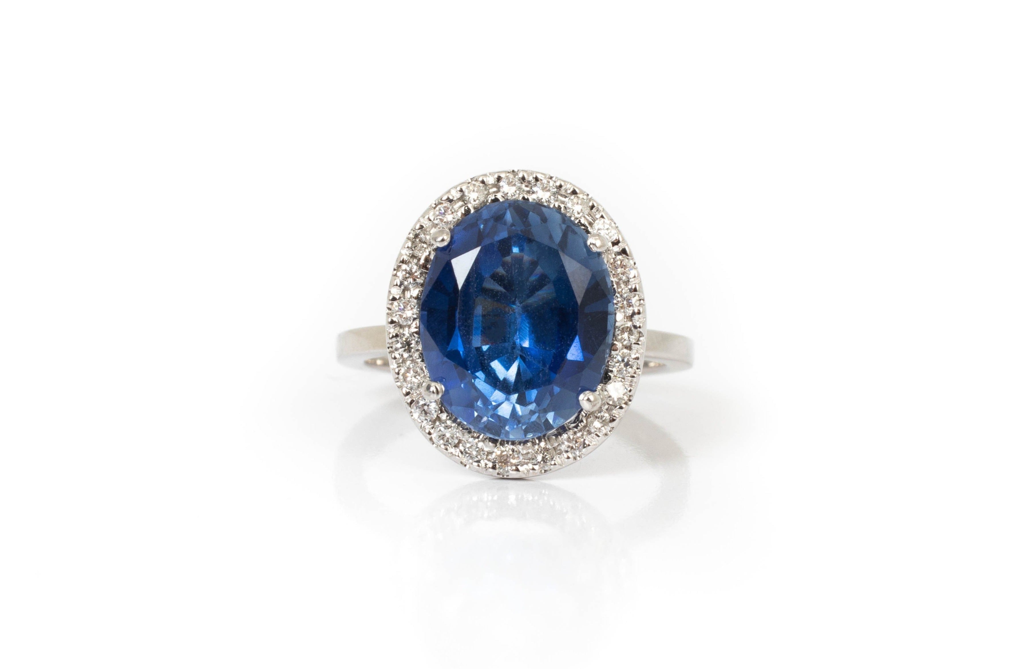 Anillo Oro Blanco Zafiro 5.00 ct y Diamantes Halo .25 ctw