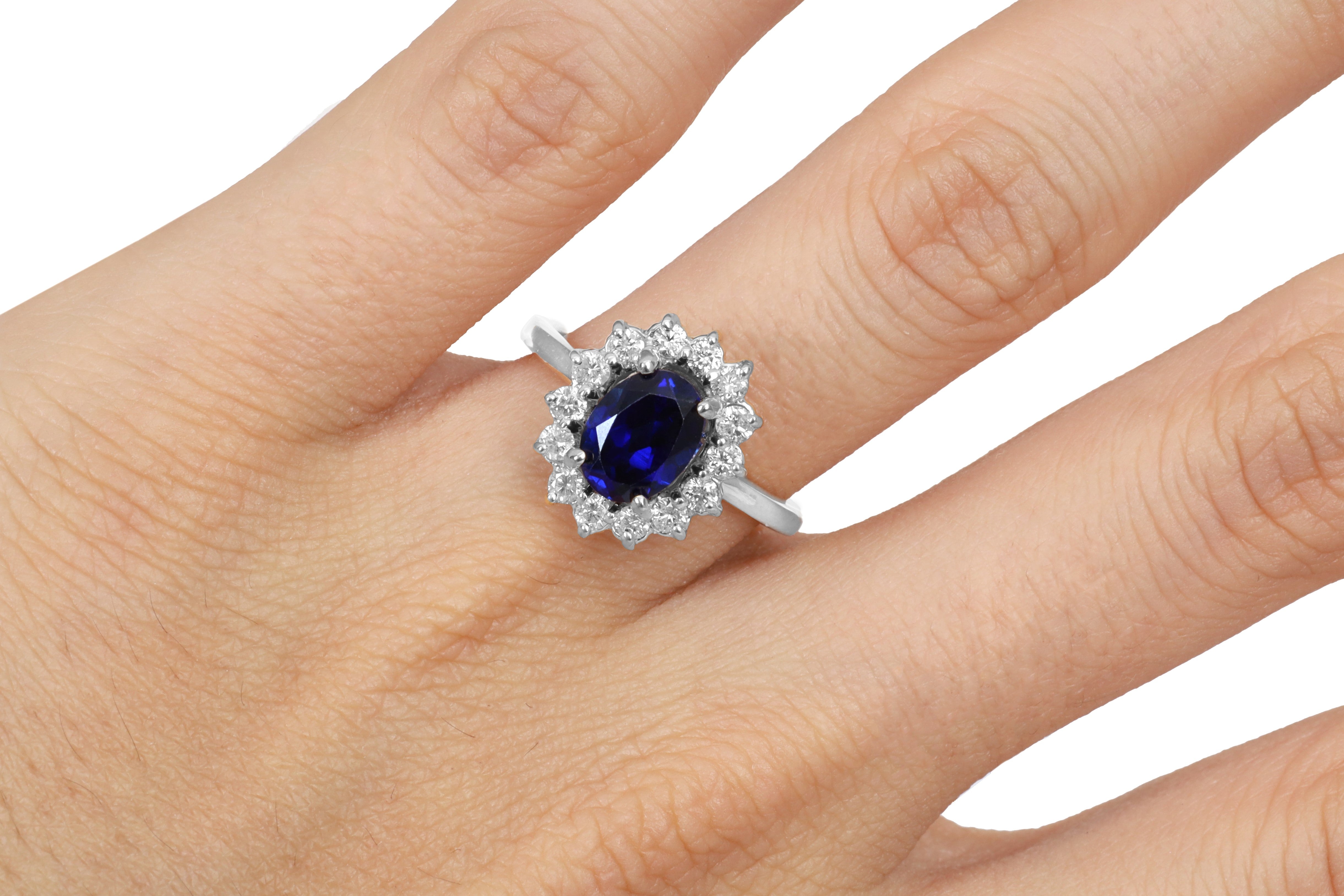 Anillo Oro Blanco Zafiro 1.80 ct y Diamantes Halo .42 ctw