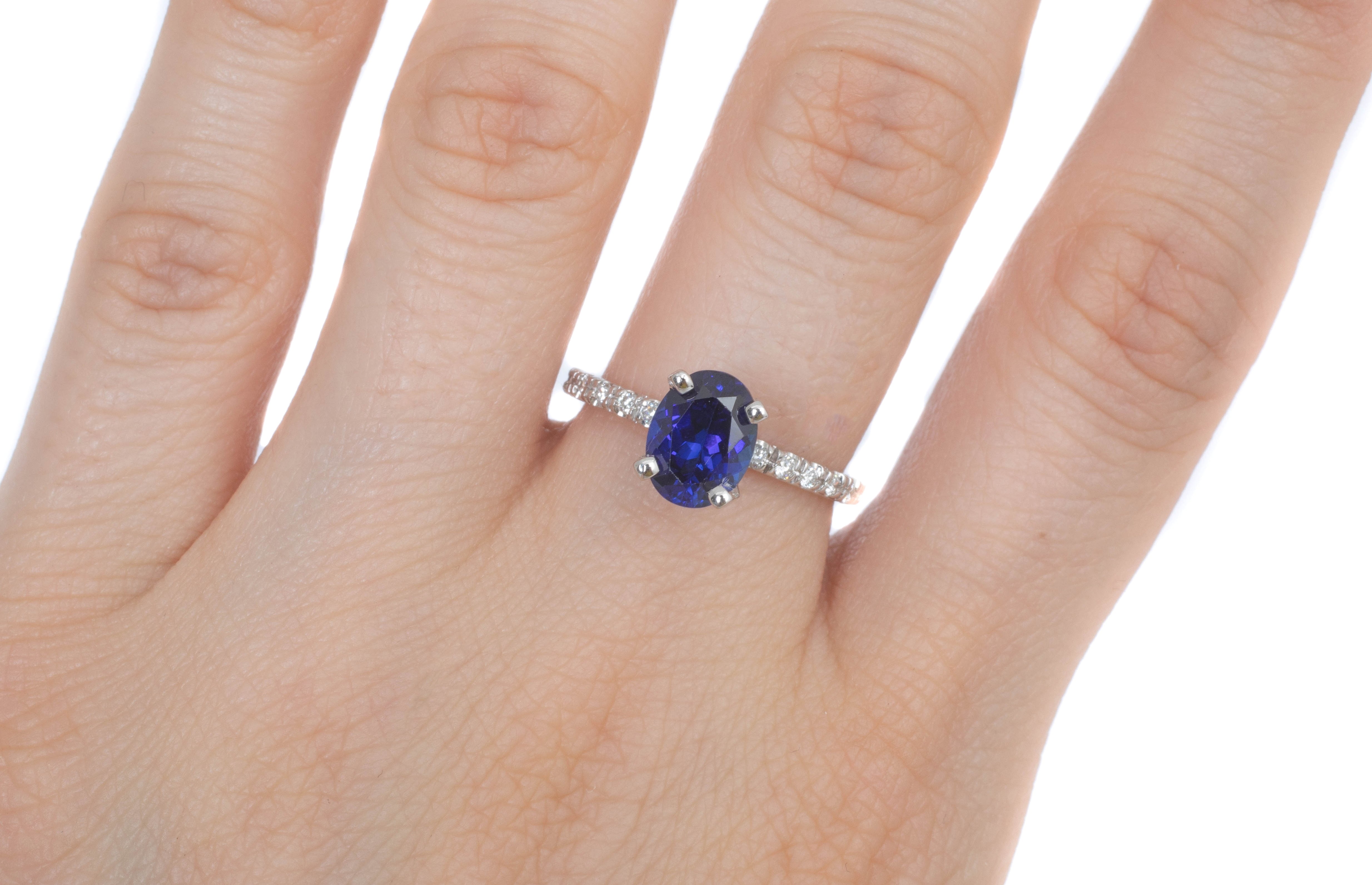 Anillo Oro Blanco Zafiro 3.00 ct y Diamante Lateral .12 ctw