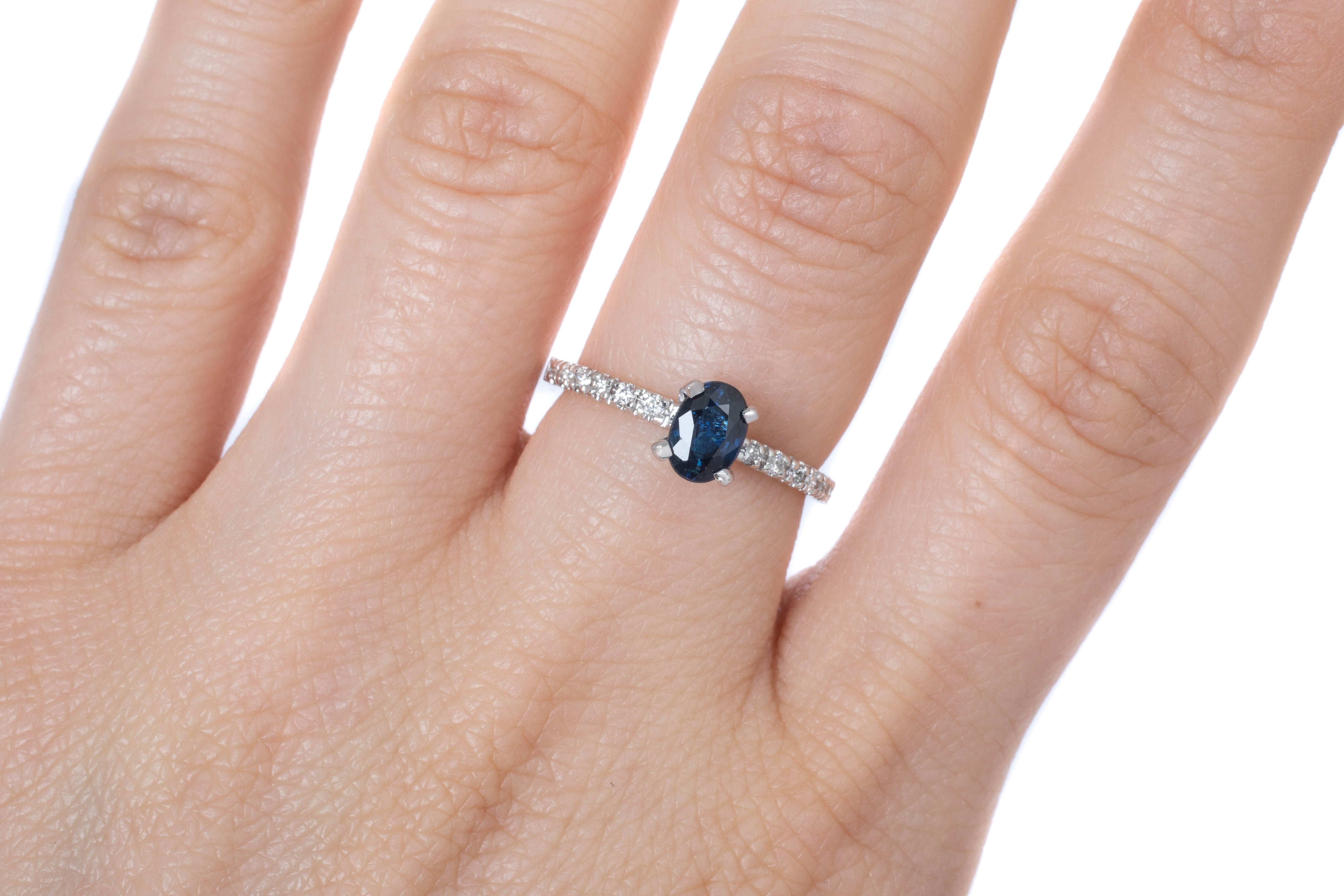 Anillo Oro Blanco Zafiro 1.60 ct y Diamante Lateral .12 ctw
