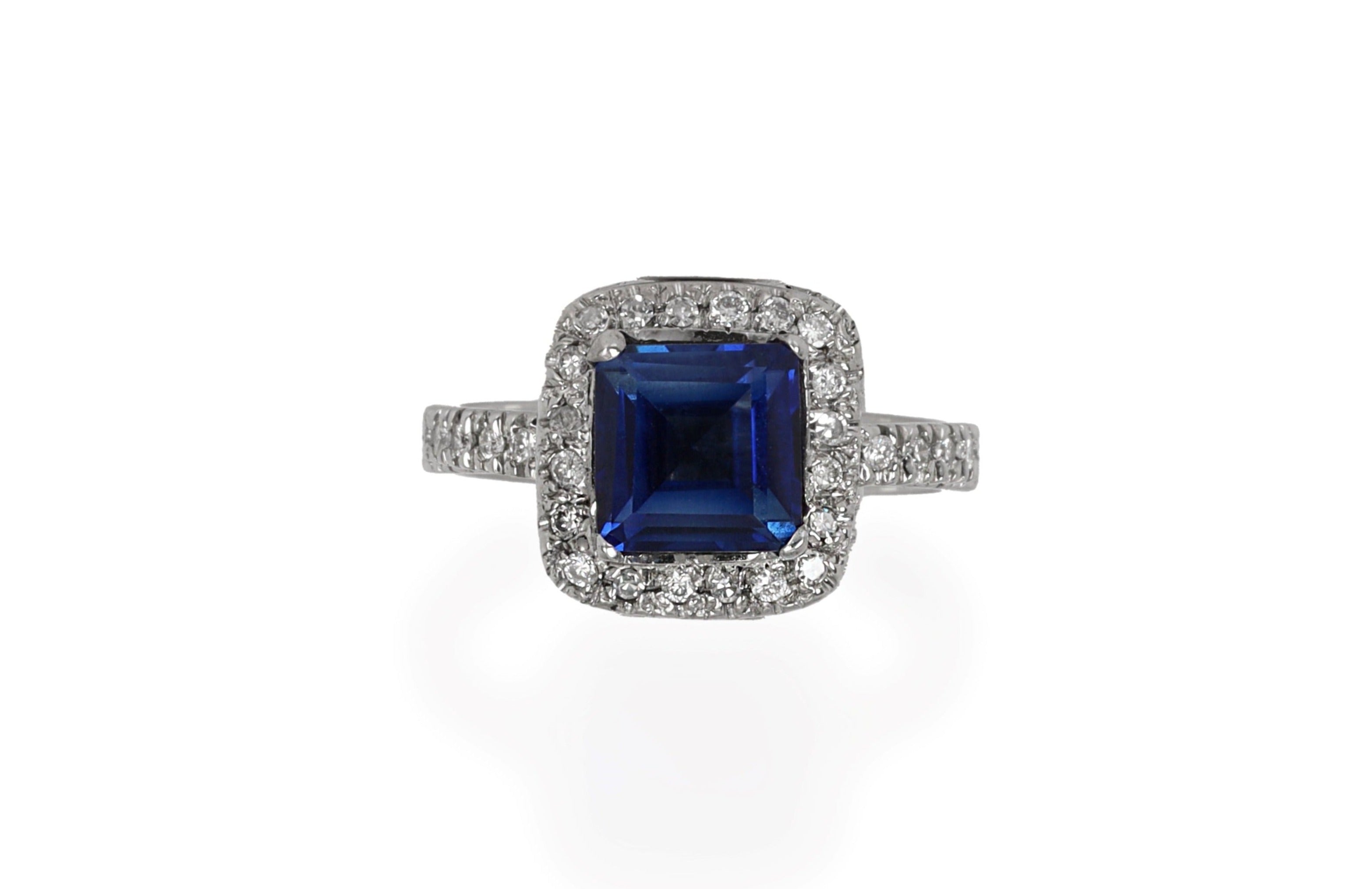 Anillo Oro Blanco Zafiro 2.00 ct y Diamantes .44 ctw