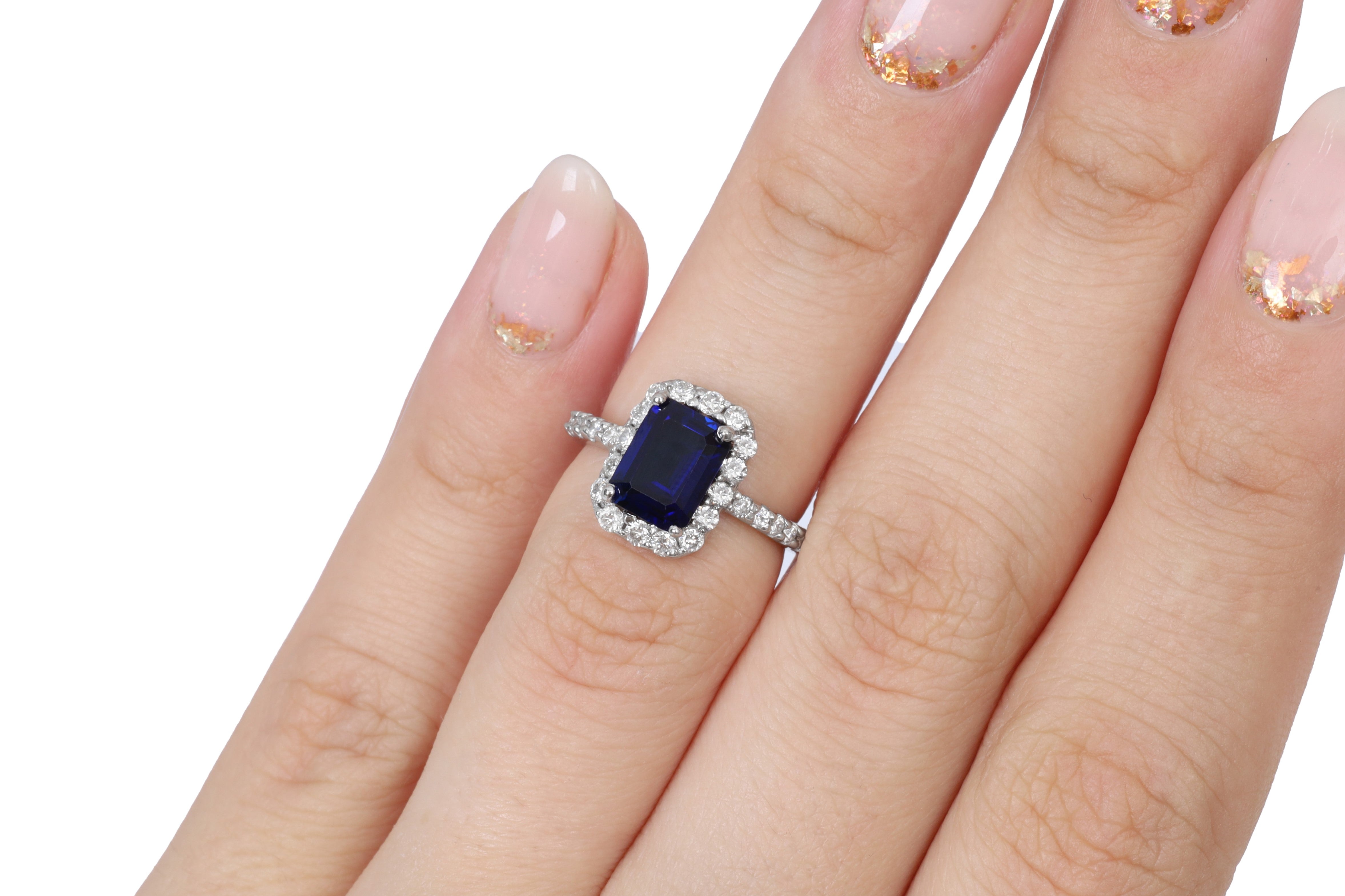 Anillo Oro Blanco Zafiro 2.80 ct y Diamantes Halo .48 ctw