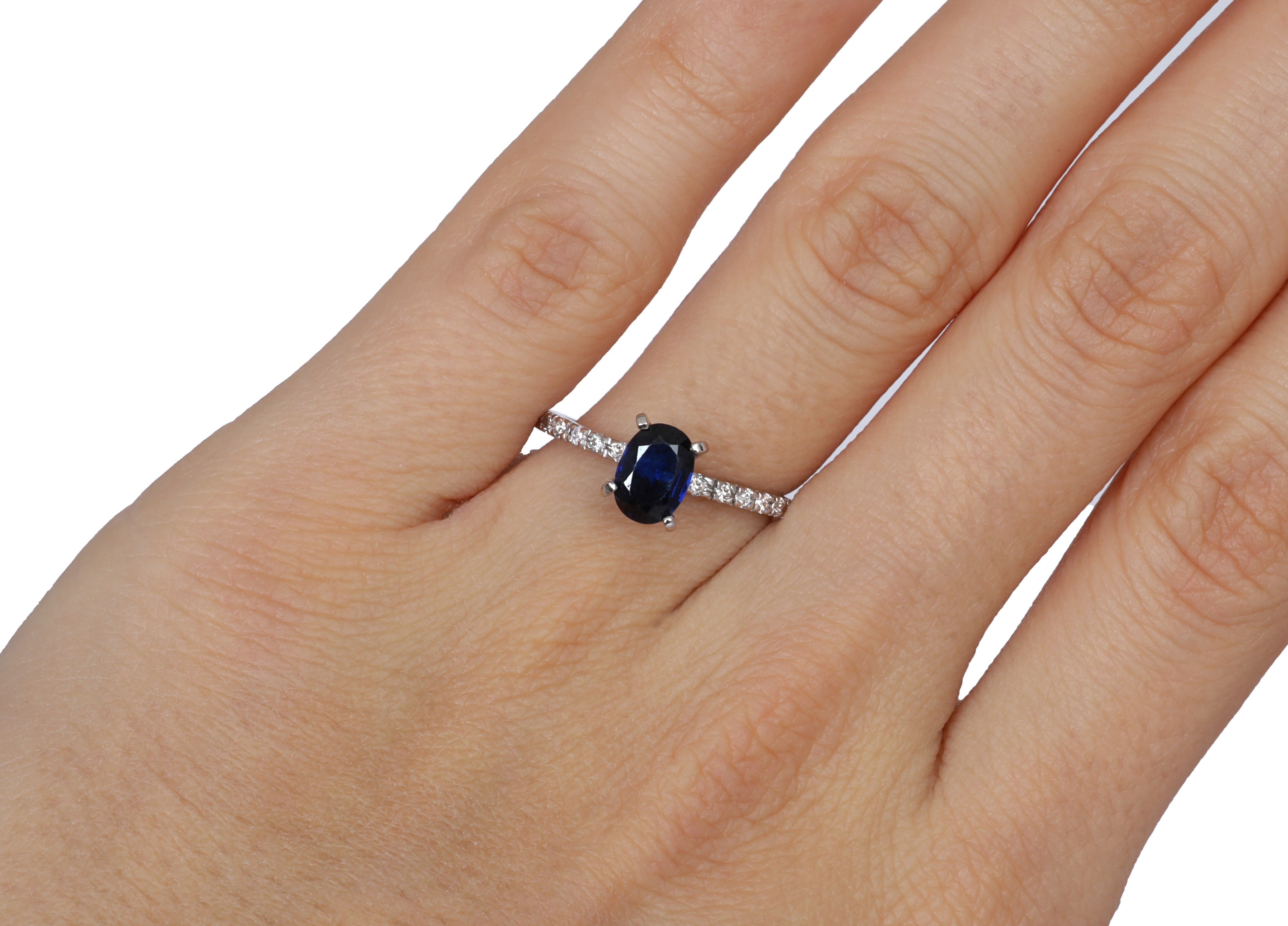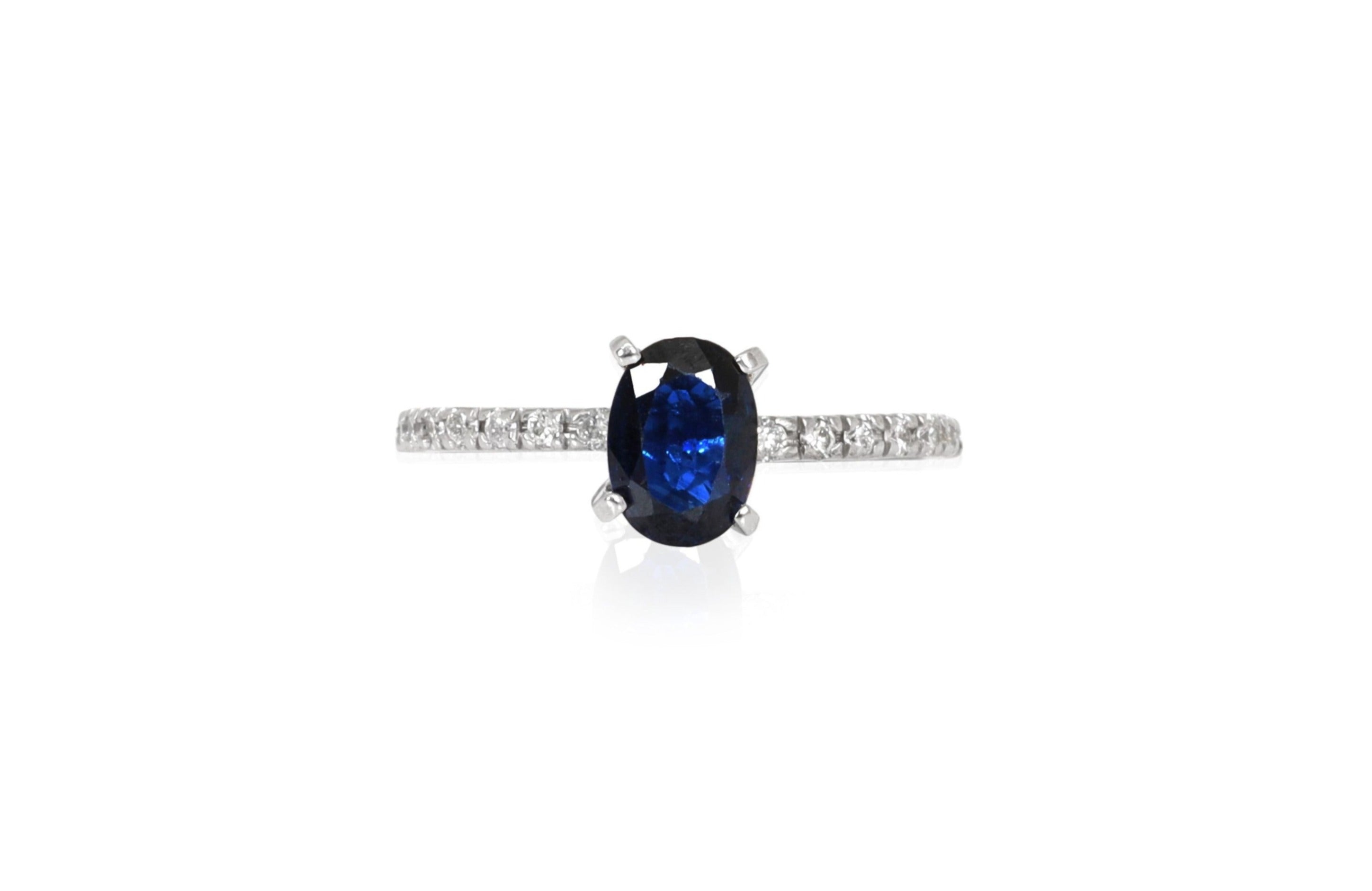 Anillo Oro Blanco Zafiro 1.00 ct y Diamante Lateral .12 ctw